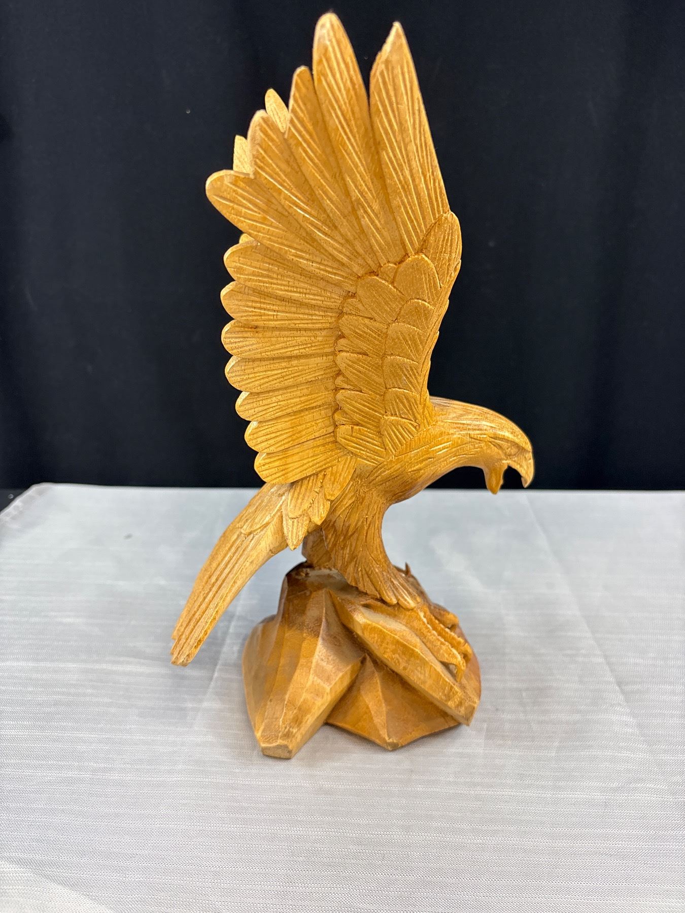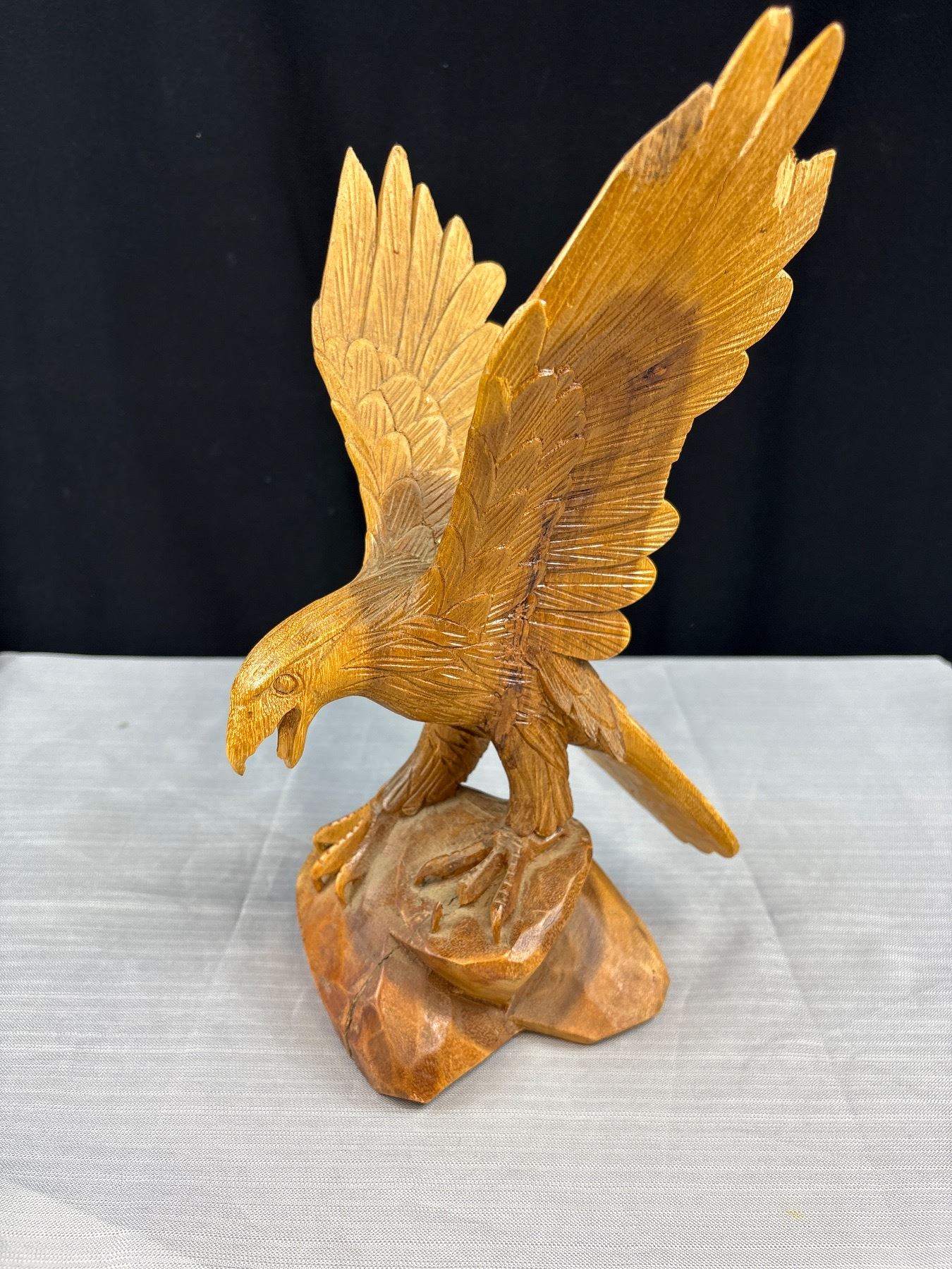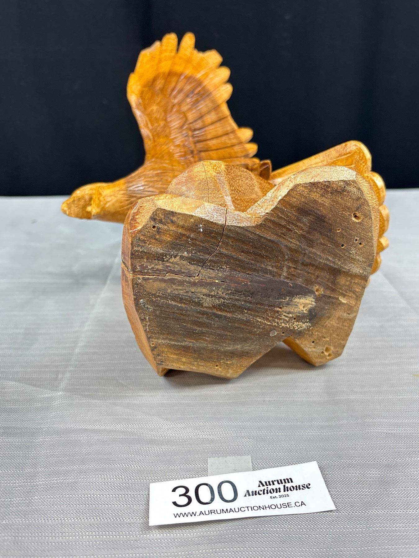 Nice Eagle Head Golden Plaque + Very Nice 18" Carved Eagle