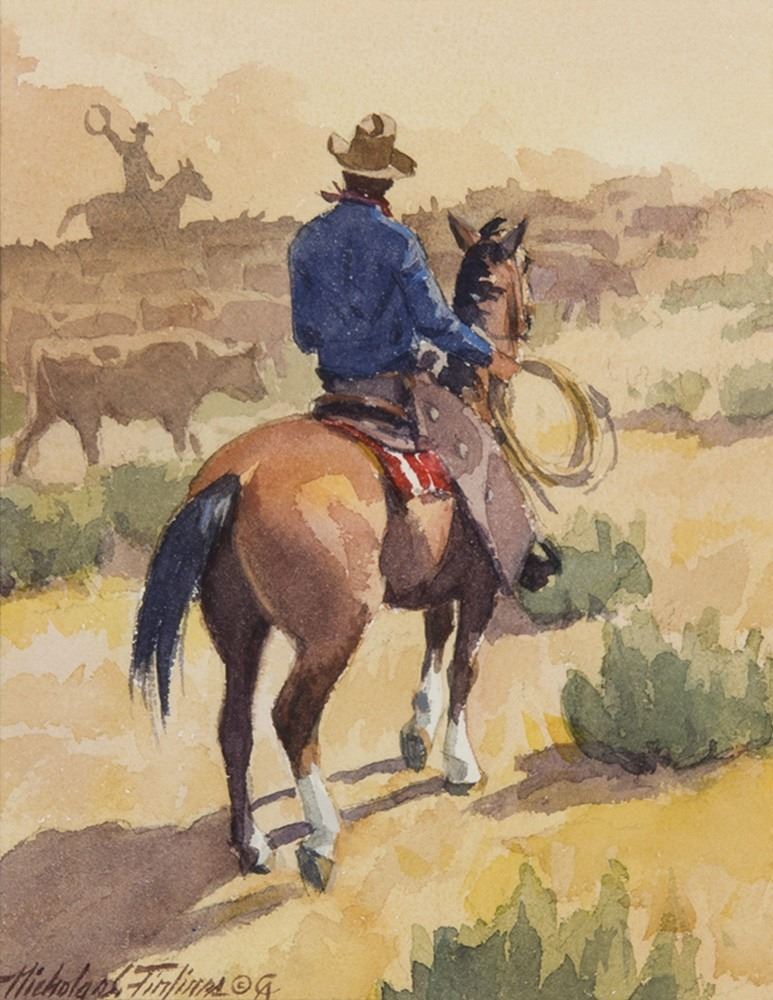 Artist: Nicholas Firfires; Title: The Gather; Medium: Watercolor; Dimensions: 10 x 8 inches; Signed: Signed/CA lower left; Framed/Base: 18 x 16 inches