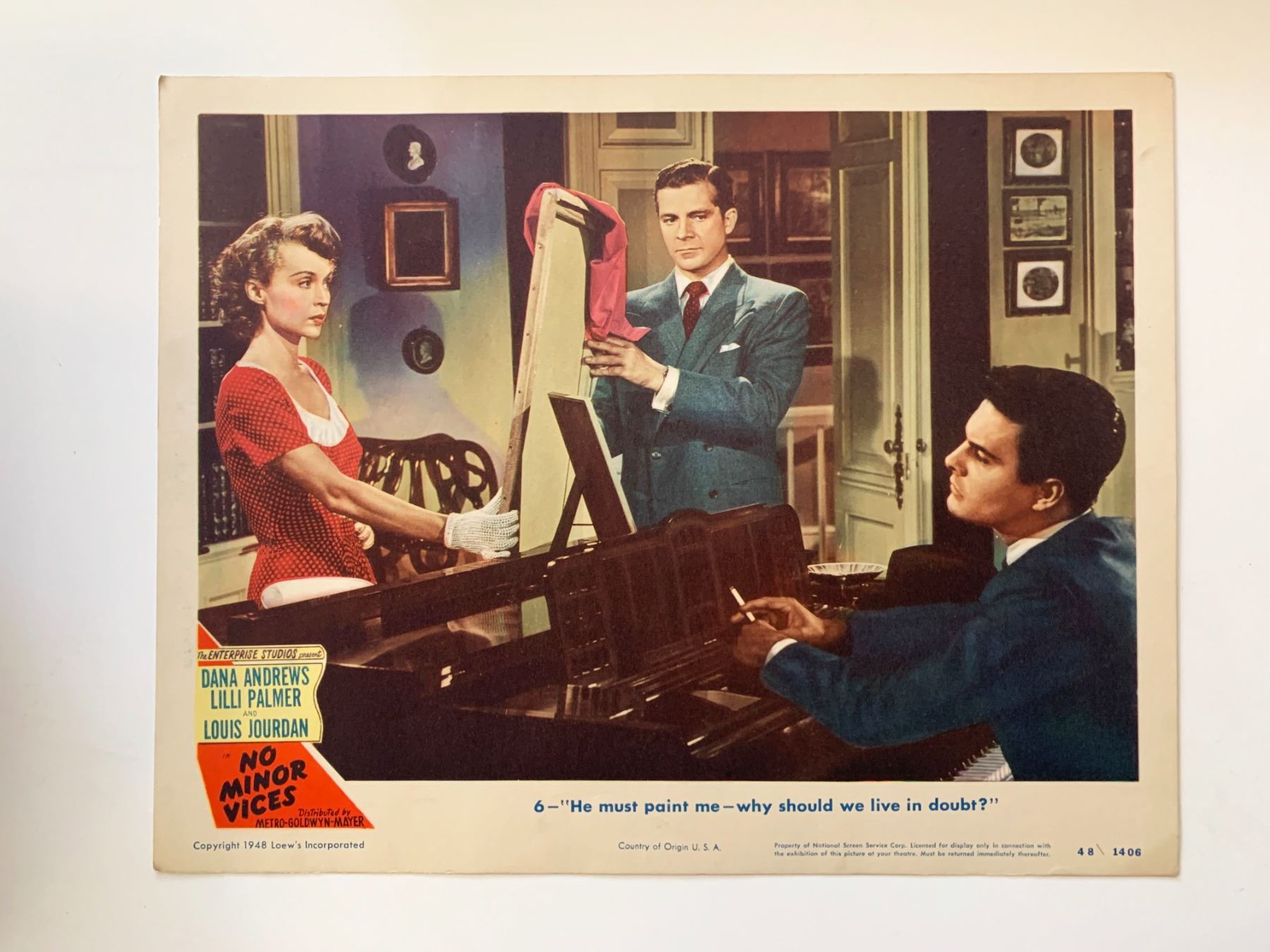 No Minor Vices original 1948 vintage lobby card on heavy card stock. 11x14 inches