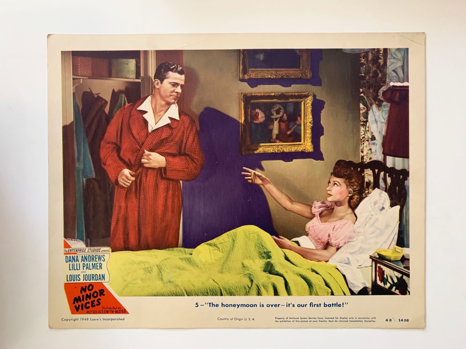 No Minor Vices original 1948 vintage lobby card on heavy card stock. 11x14 inches
