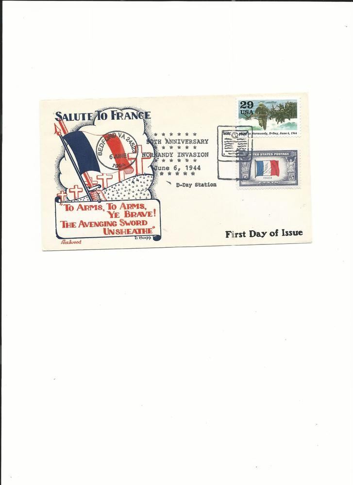 Normandy Invasion 50th Anniversary - First Day Cover - Jun 6th 1994 - Bedford, VA. Dorthy Knapp Cachet