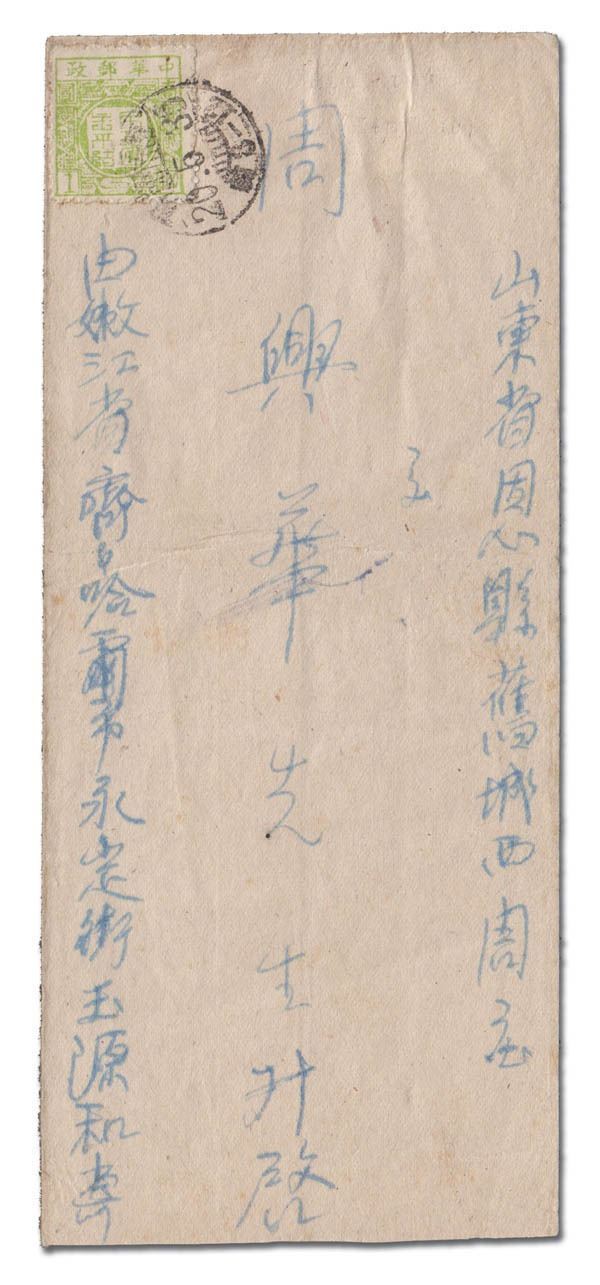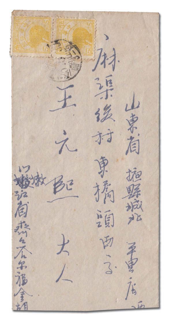 North East China, 1946 May 20 & May 25, pair of Pamianchang Print covers from Tsitsihar to Shandong Province Yang NE320-321, lovely and clean, one a 1 yellow green single tied by neat Japanese-style 20.5.35 c.d.s., with the second cover franked by a pair of the 50c yellow tied by Japanese-style 25.5.35 dater, Fine to Very Fine+, an attractive and fresh pair.