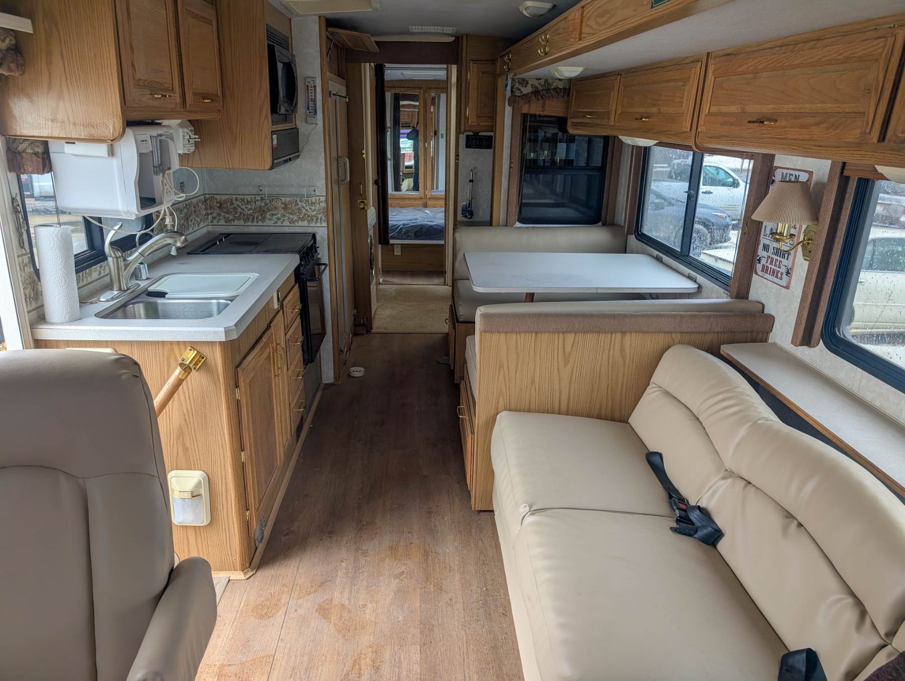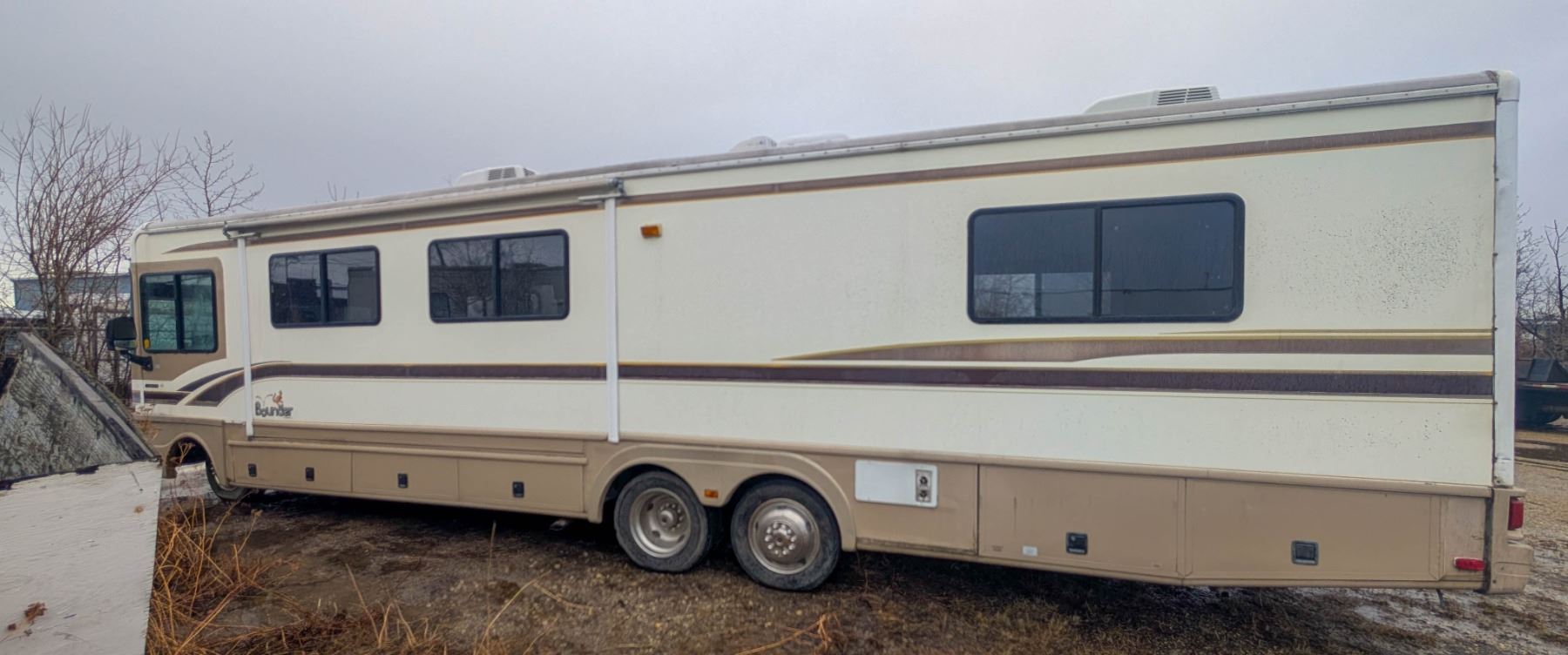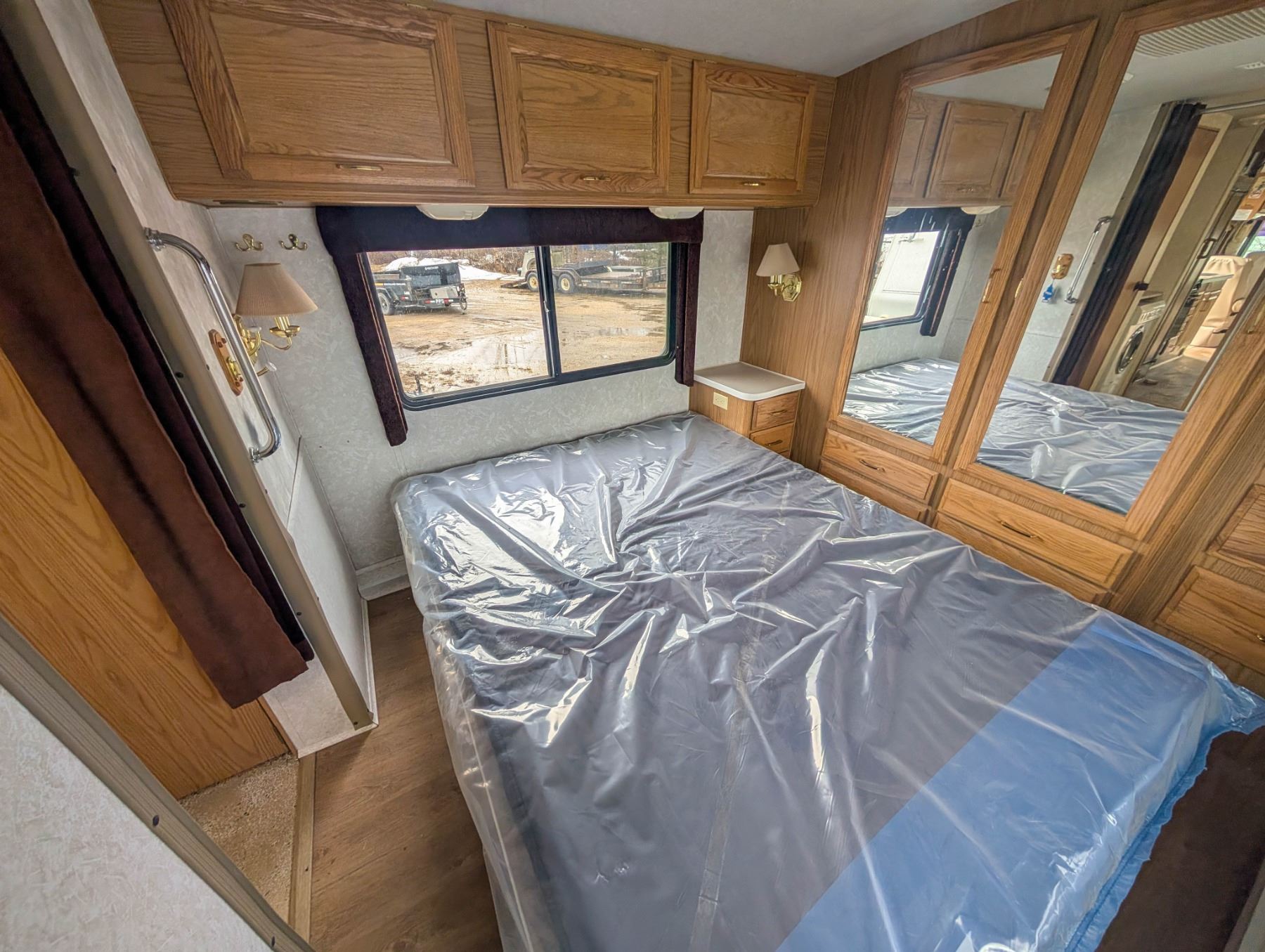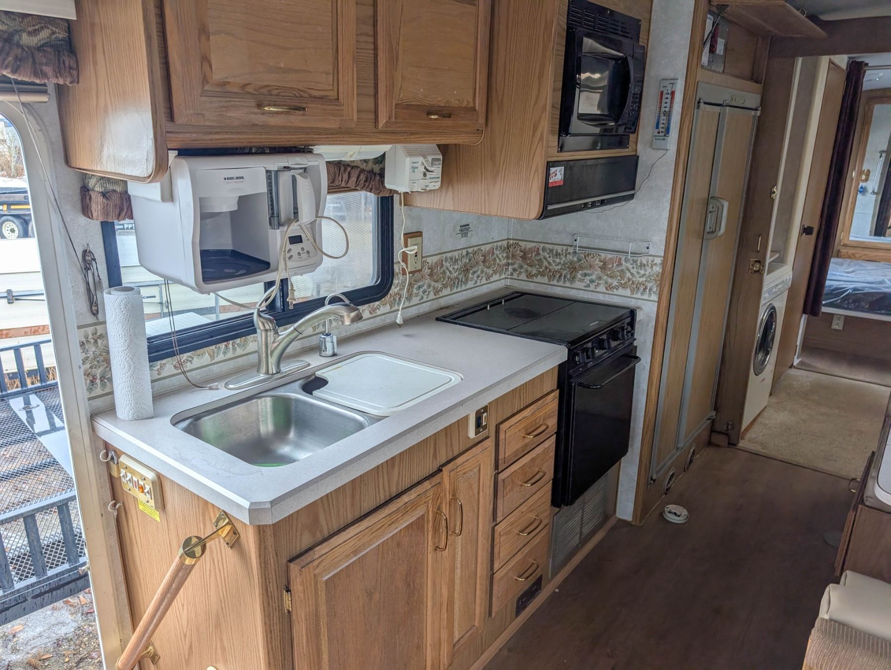 MOTORHOME FEATURES, DRIVERS SIDE SLIDE, AUTOMATIC STEPS, AIR CONDITIONING, RADIO, KITCHEN, BATHROOM, BEDROOM, WASHING MACHINE, 454 ENGINE, AWNING.