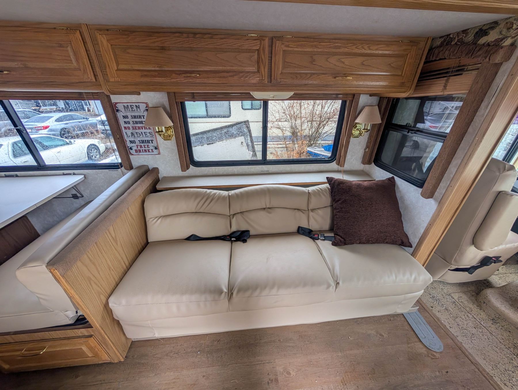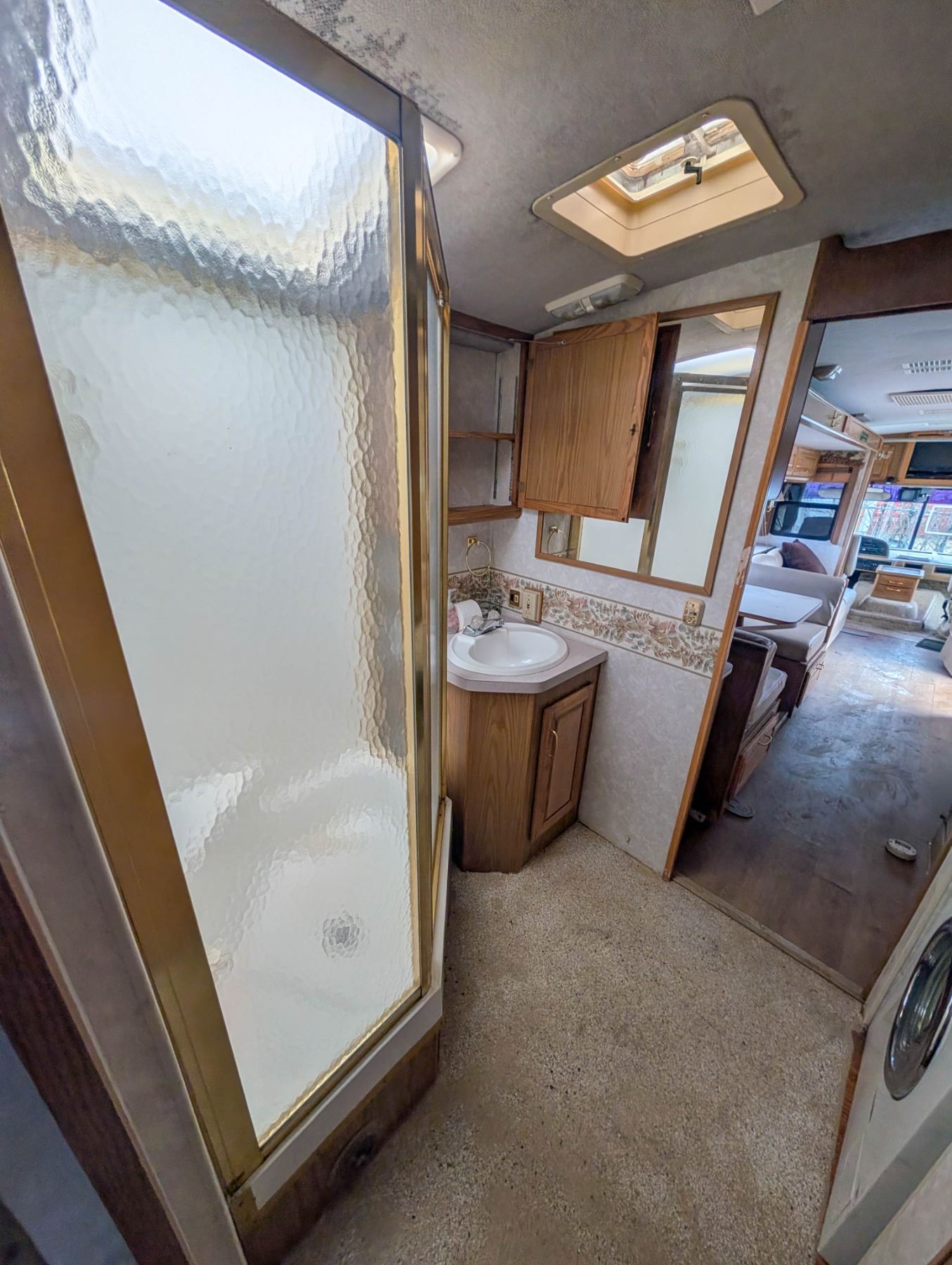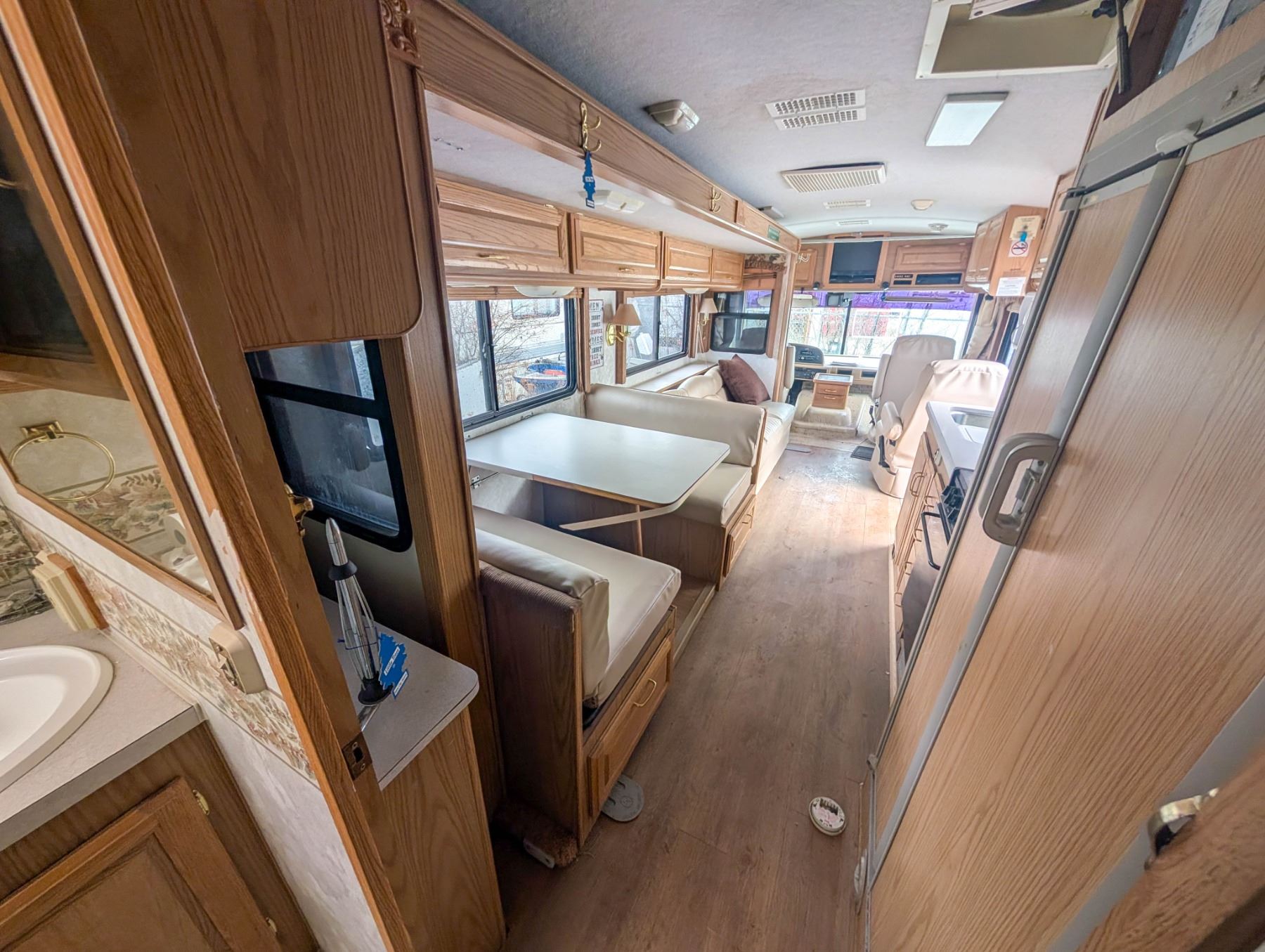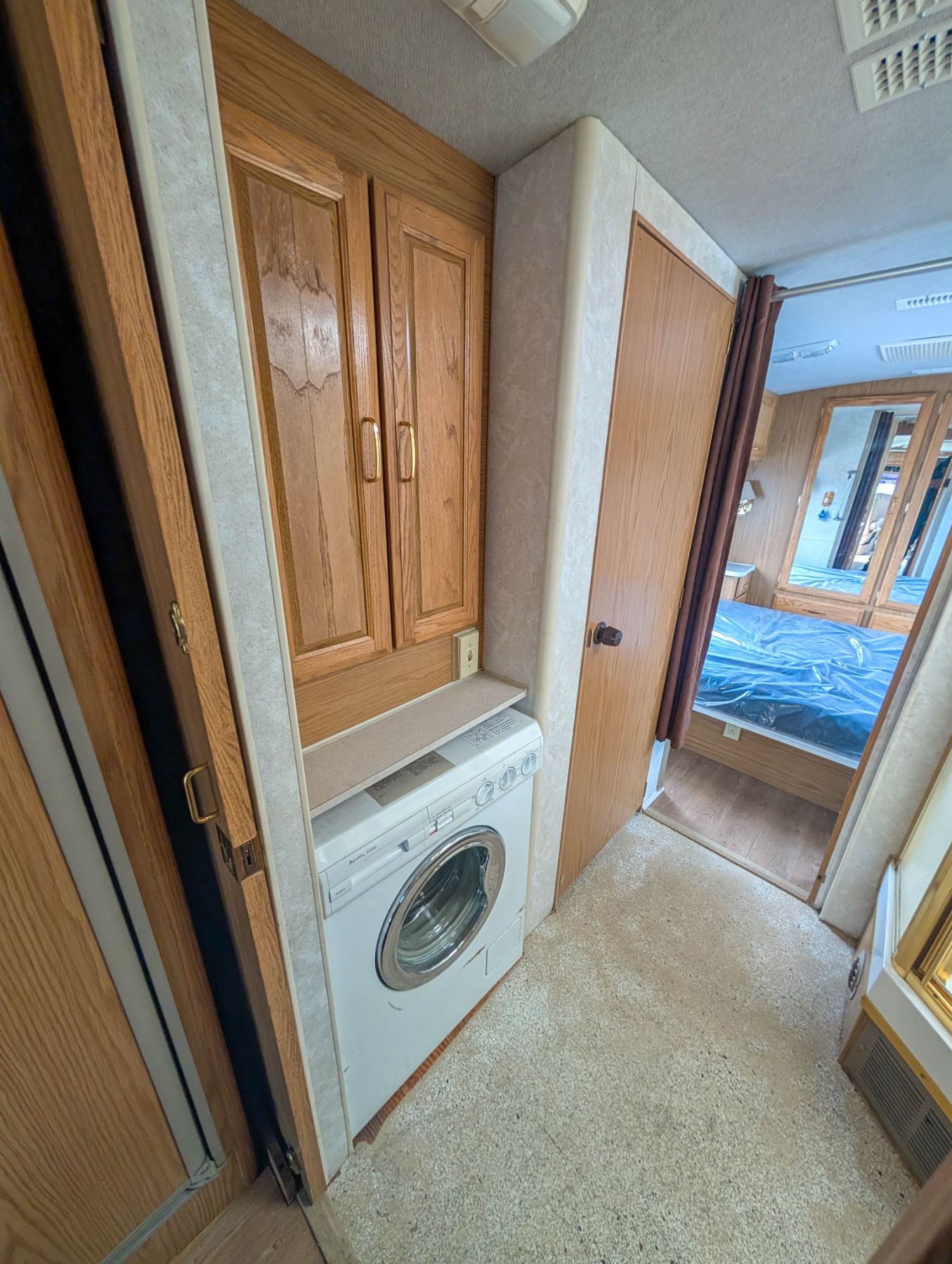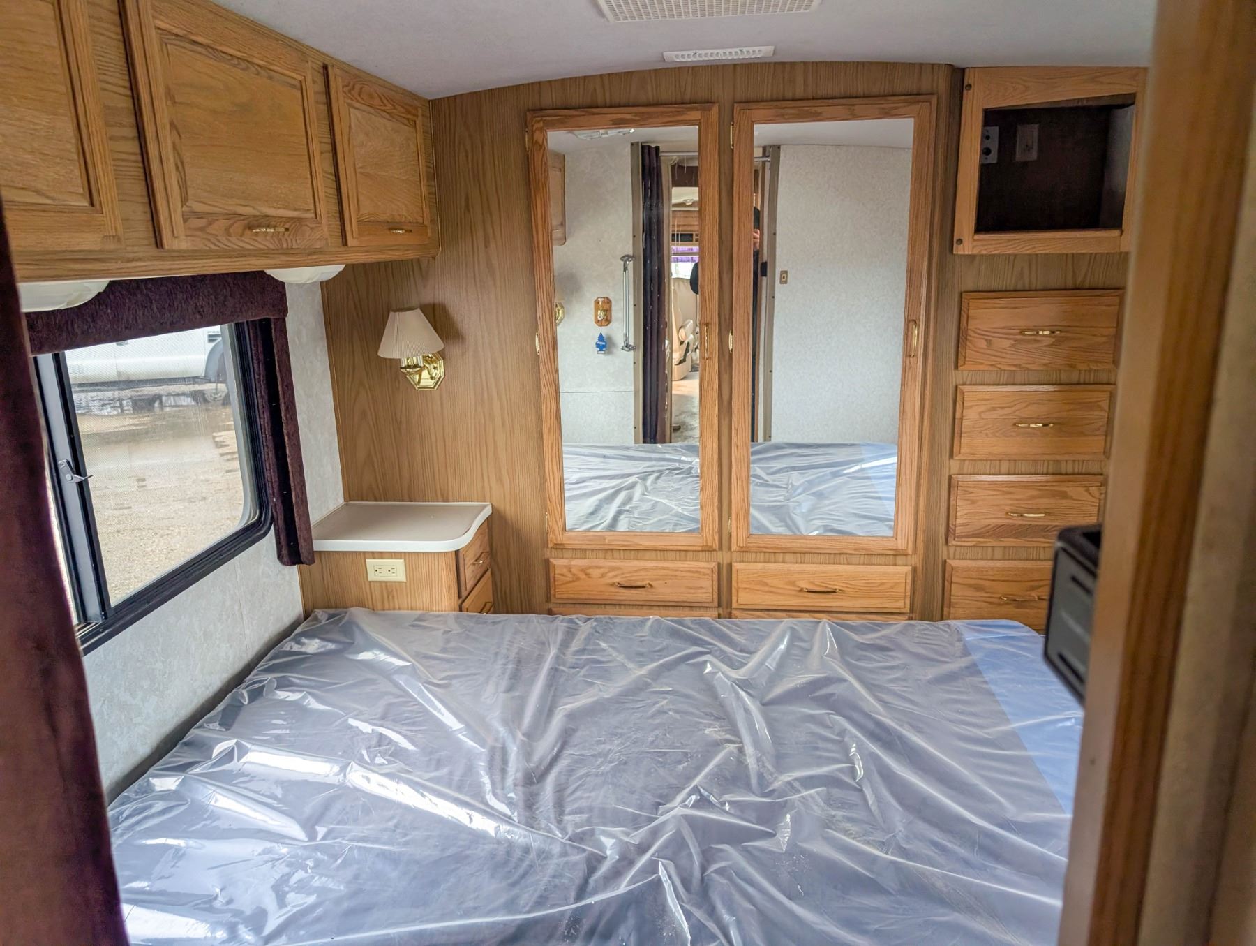 MOTORHOME FEATURES, DRIVERS SIDE SLIDE, AUTOMATIC STEPS, AIR CONDITIONING, RADIO, KITCHEN, BATHROOM, BEDROOM, WASHING MACHINE, 454 ENGINE, AWNING.