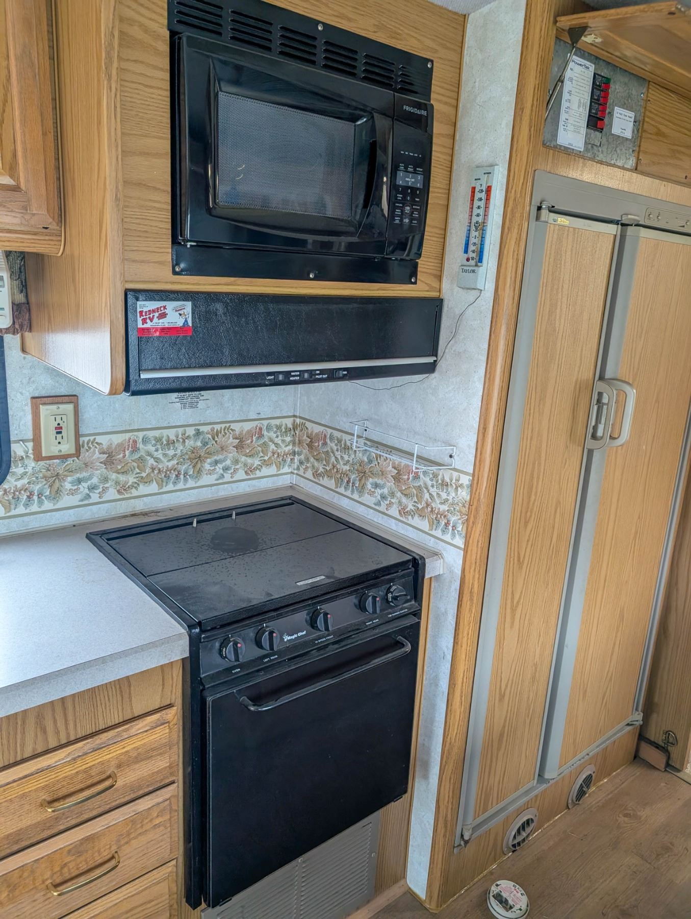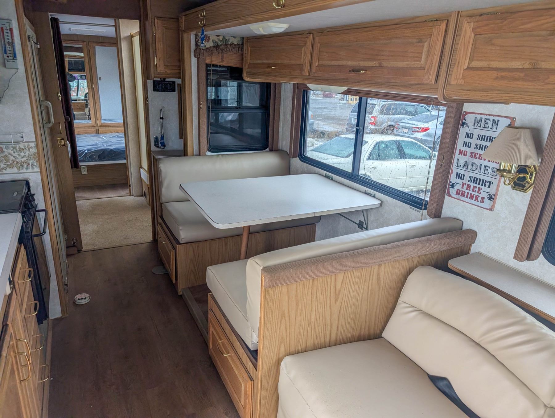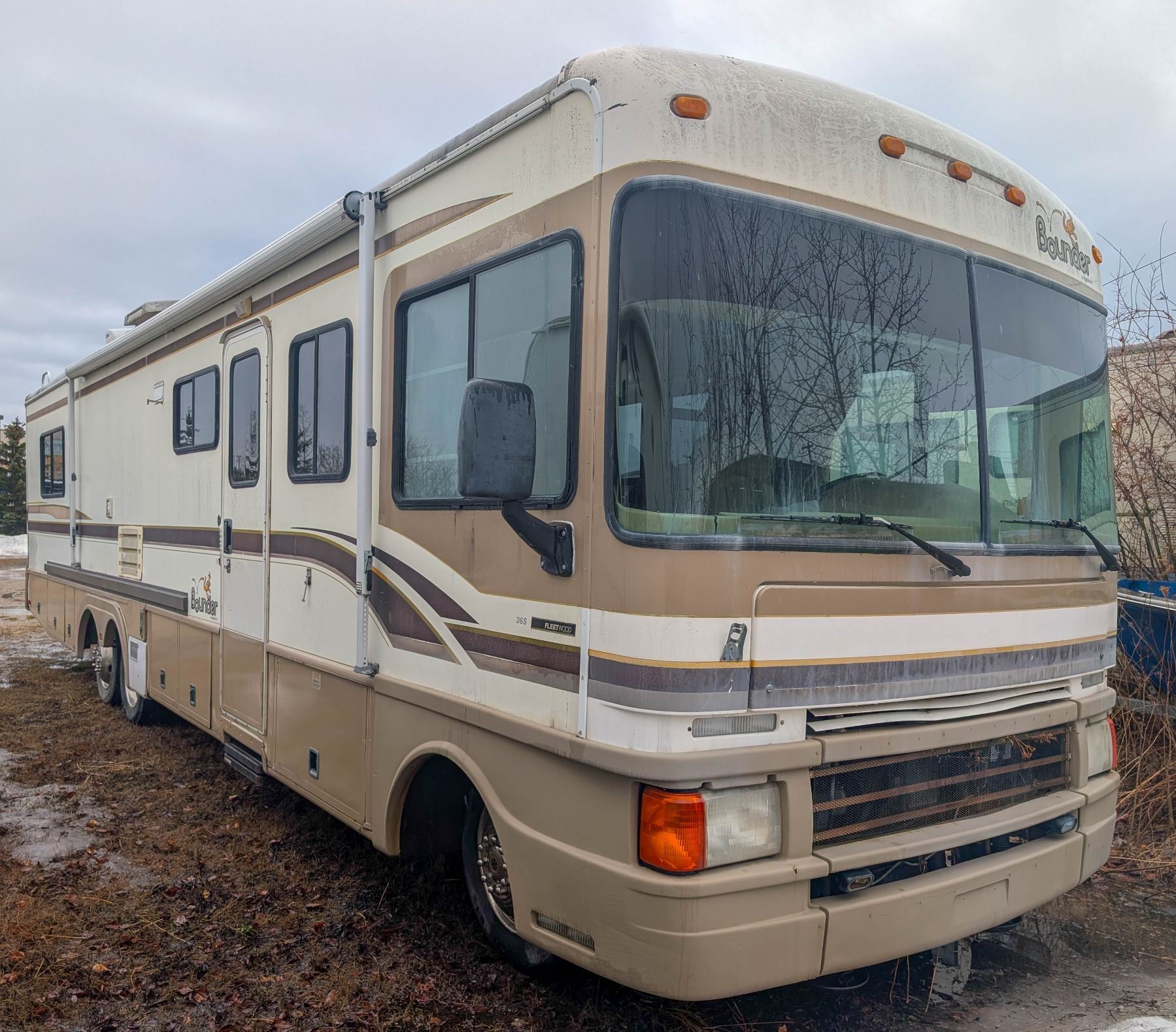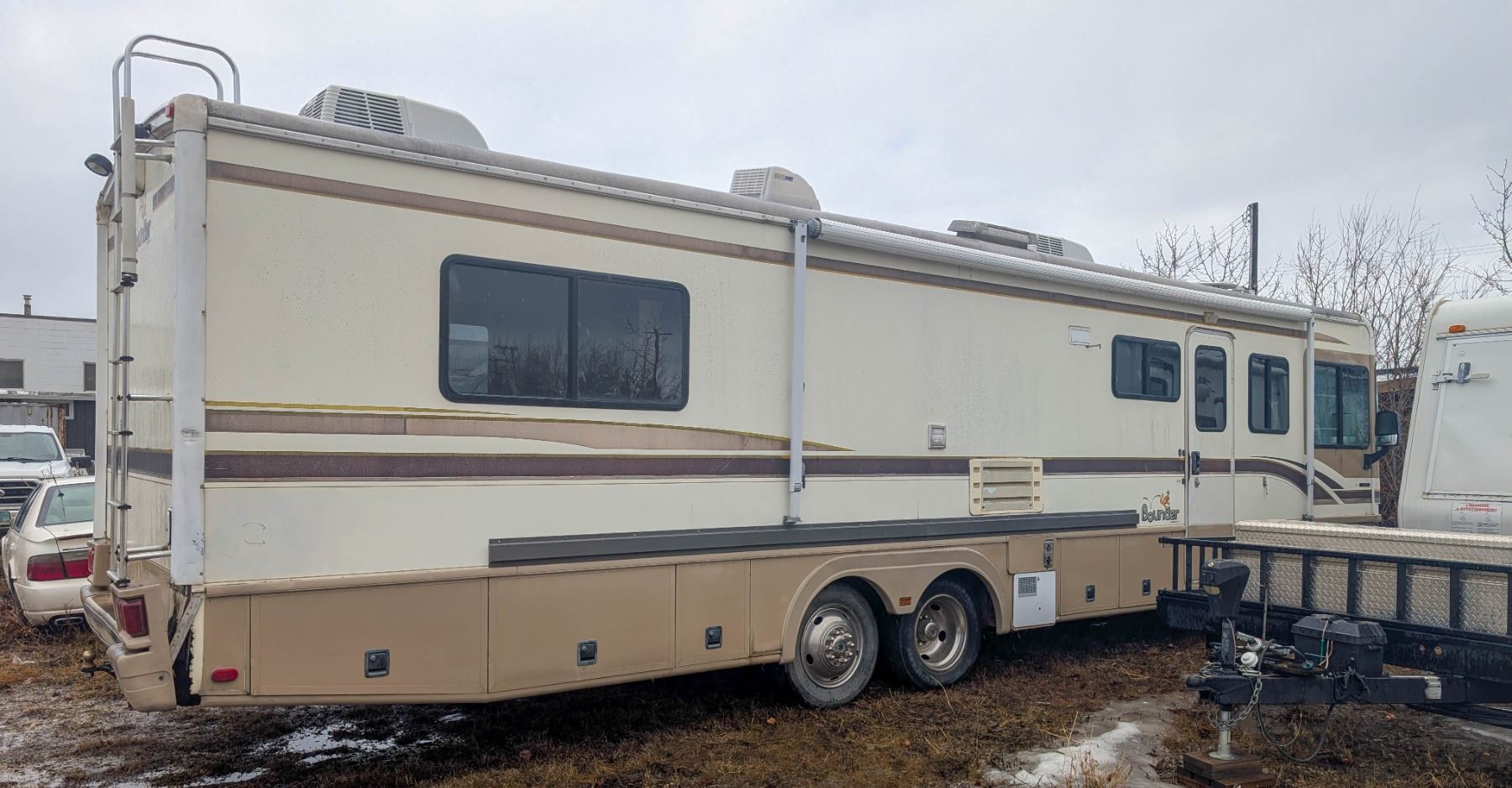 MOTORHOME FEATURES, DRIVERS SIDE SLIDE, AUTOMATIC STEPS, AIR CONDITIONING, RADIO, KITCHEN, BATHROOM, BEDROOM, WASHING MACHINE, 454 ENGINE, AWNING.