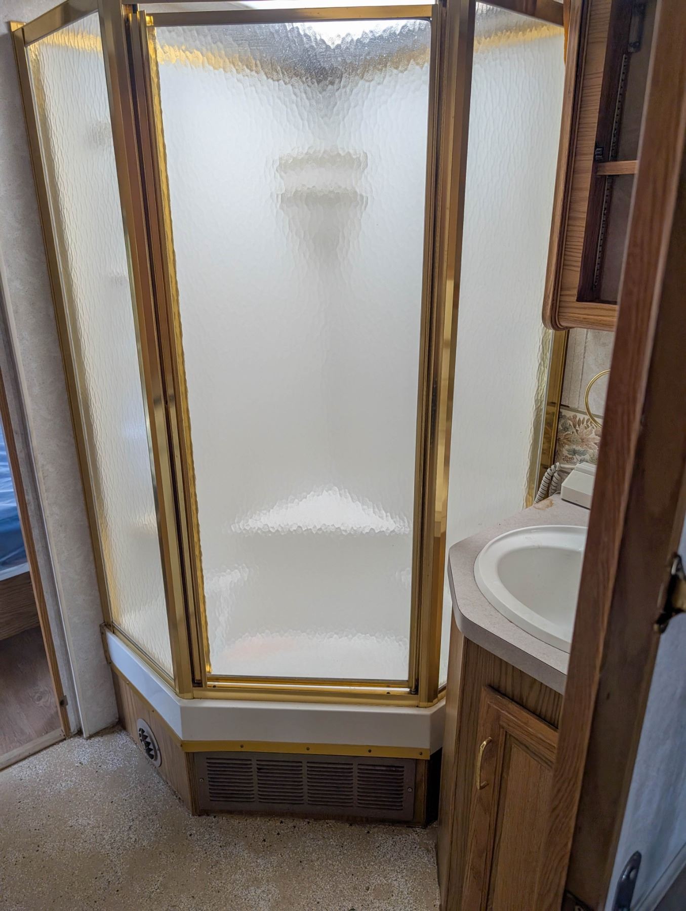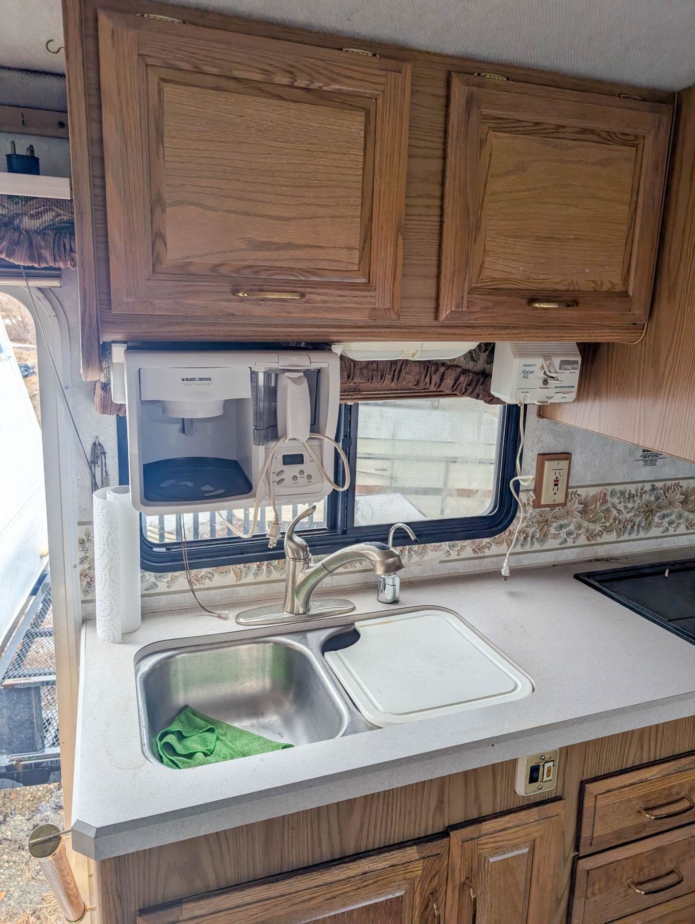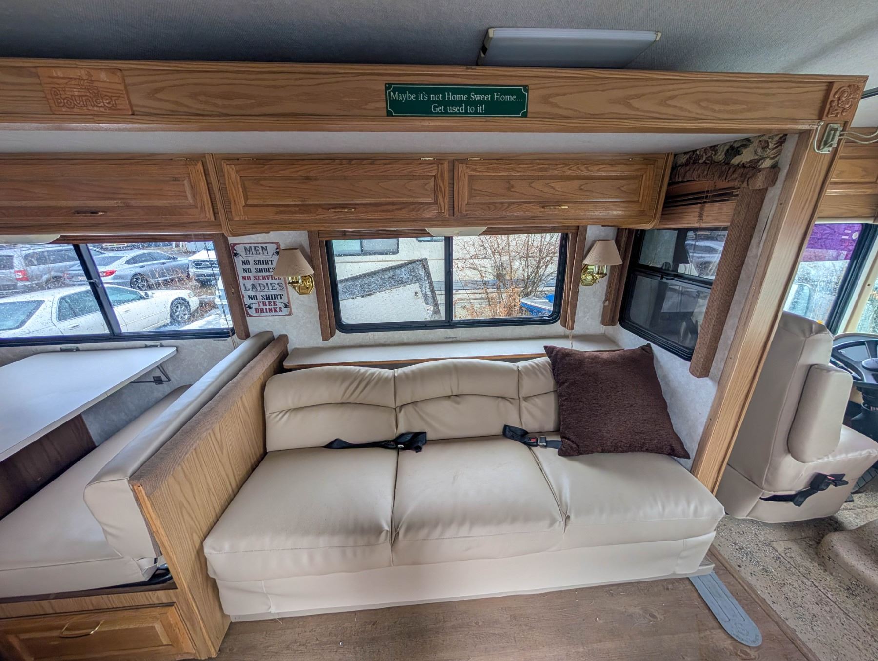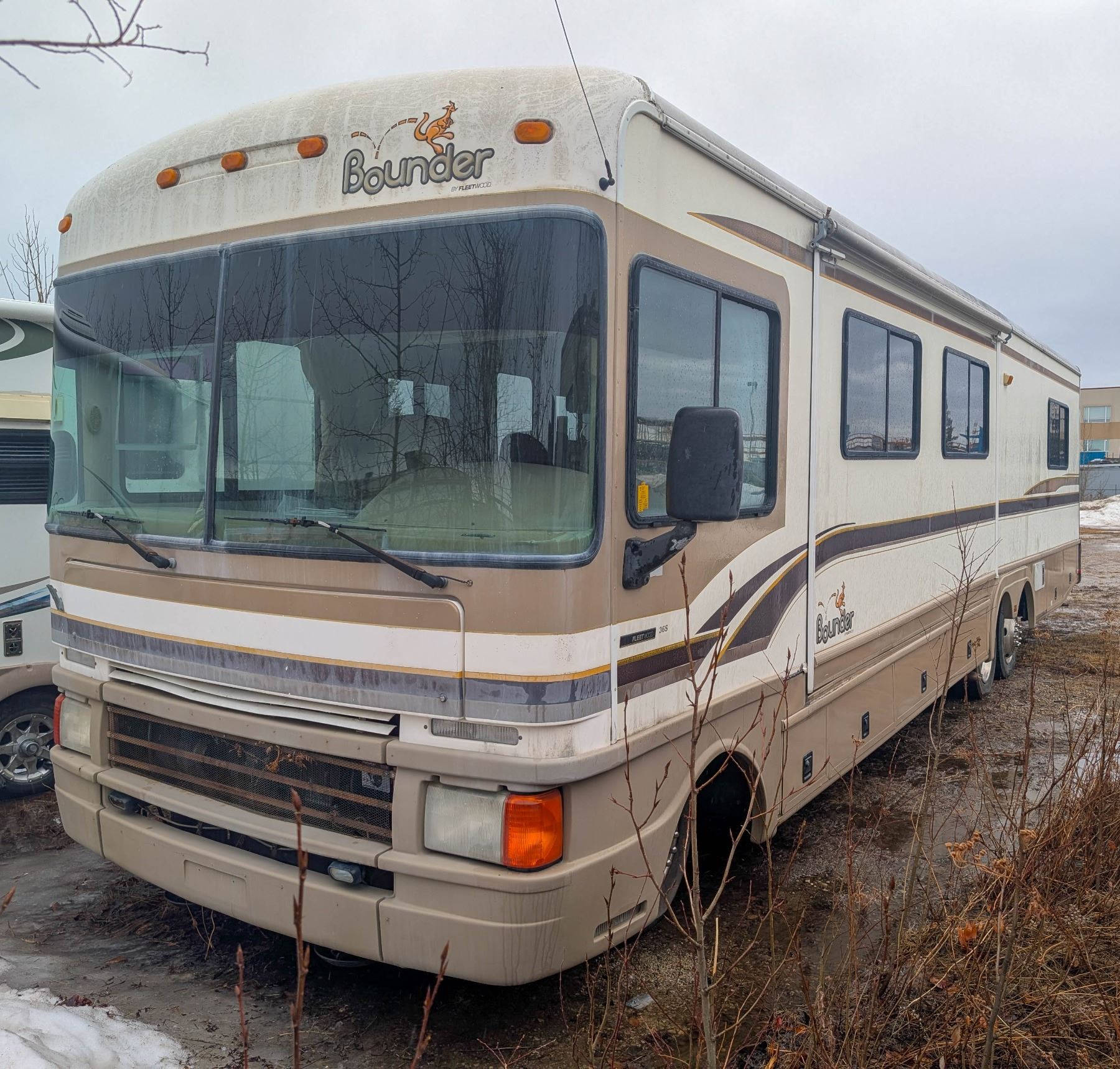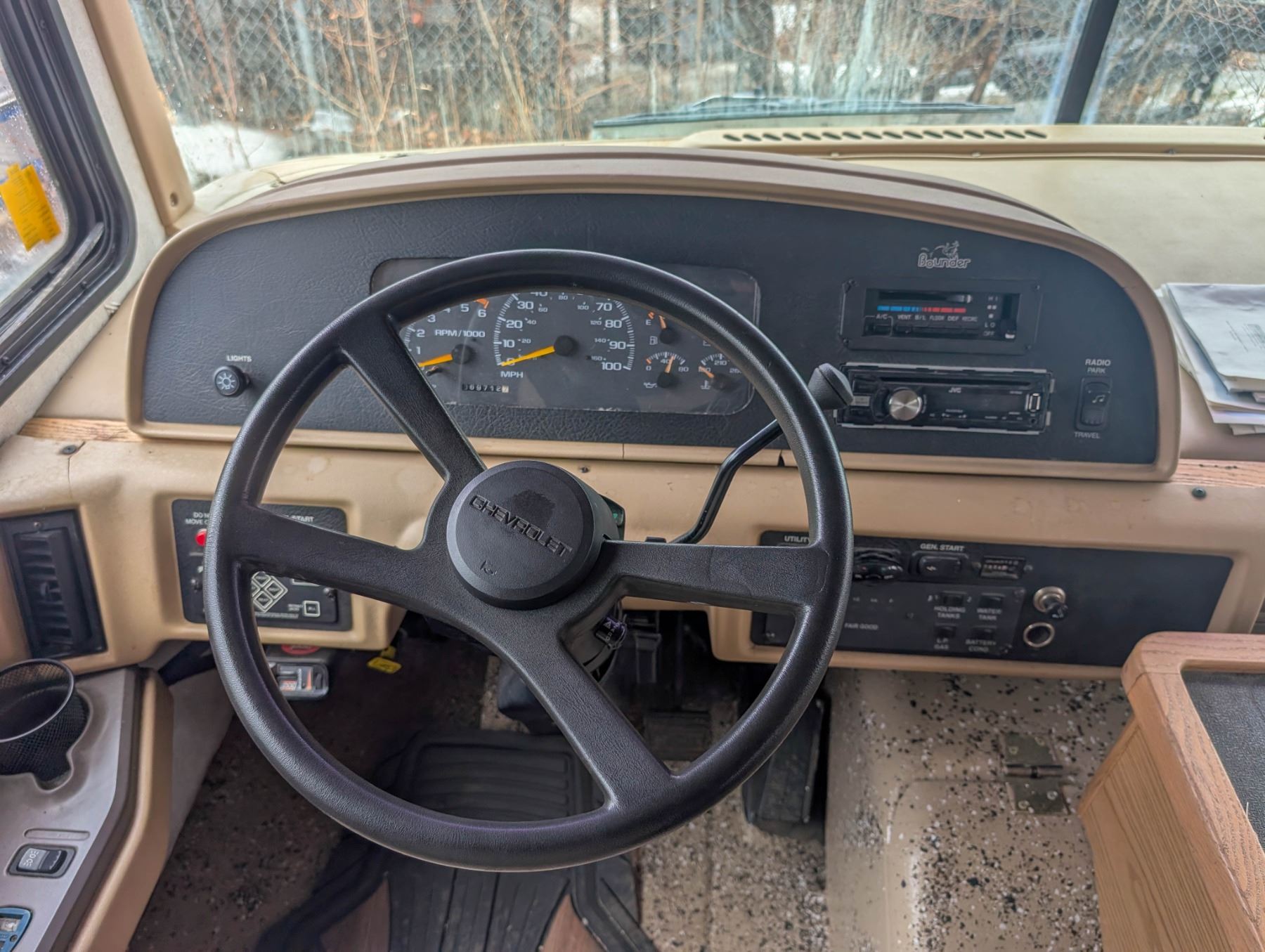MOTORHOME FEATURES, DRIVERS SIDE SLIDE, AUTOMATIC STEPS, AIR CONDITIONING, RADIO, KITCHEN, BATHROOM, BEDROOM, WASHING MACHINE, 454 ENGINE, AWNING.