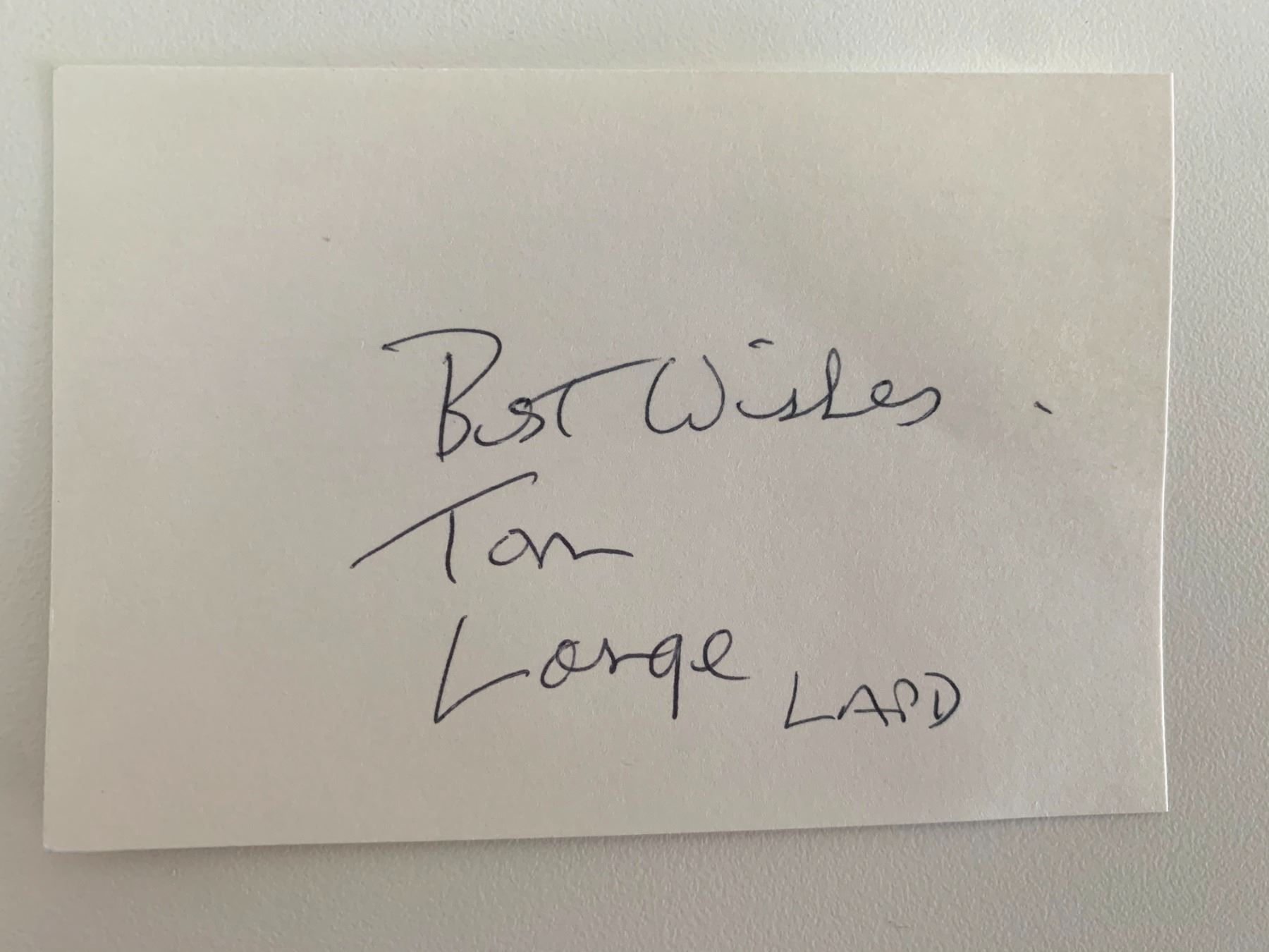 Tom Lange original signature. 3x5 inches
