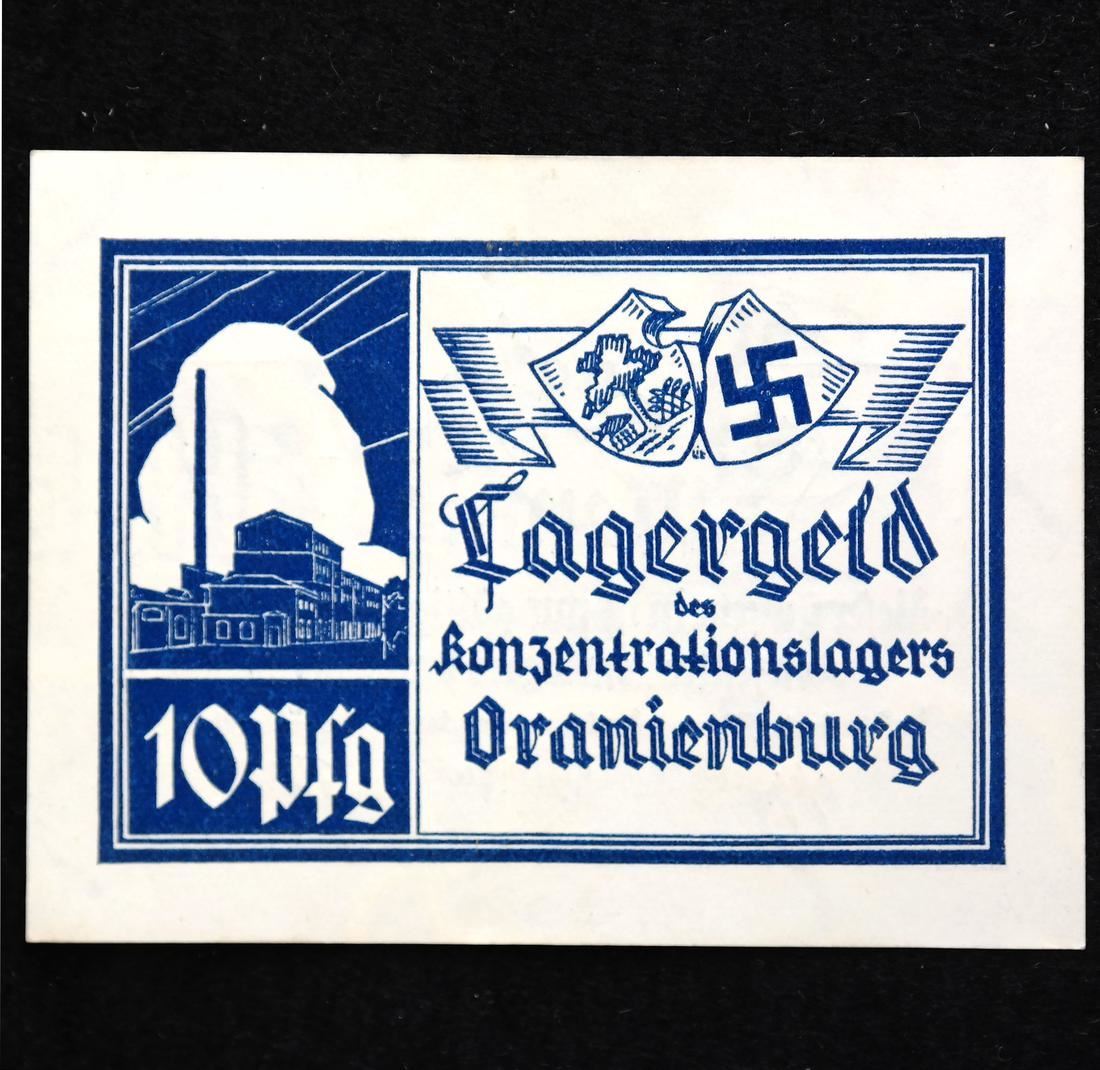 Three different Konzentrationslager Oranienburg pictorial notes on watermarked paper, 10pf, 50pf and 1RM denominations, all sound and About Uncirculated to Uncirculated.