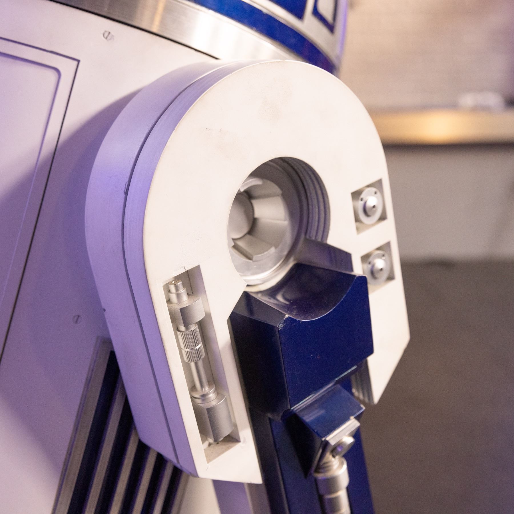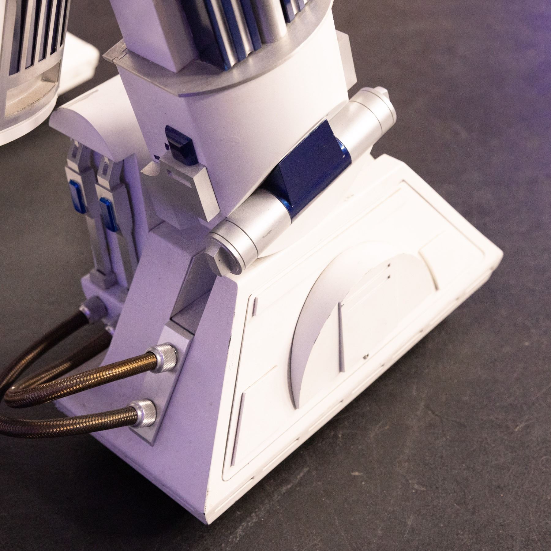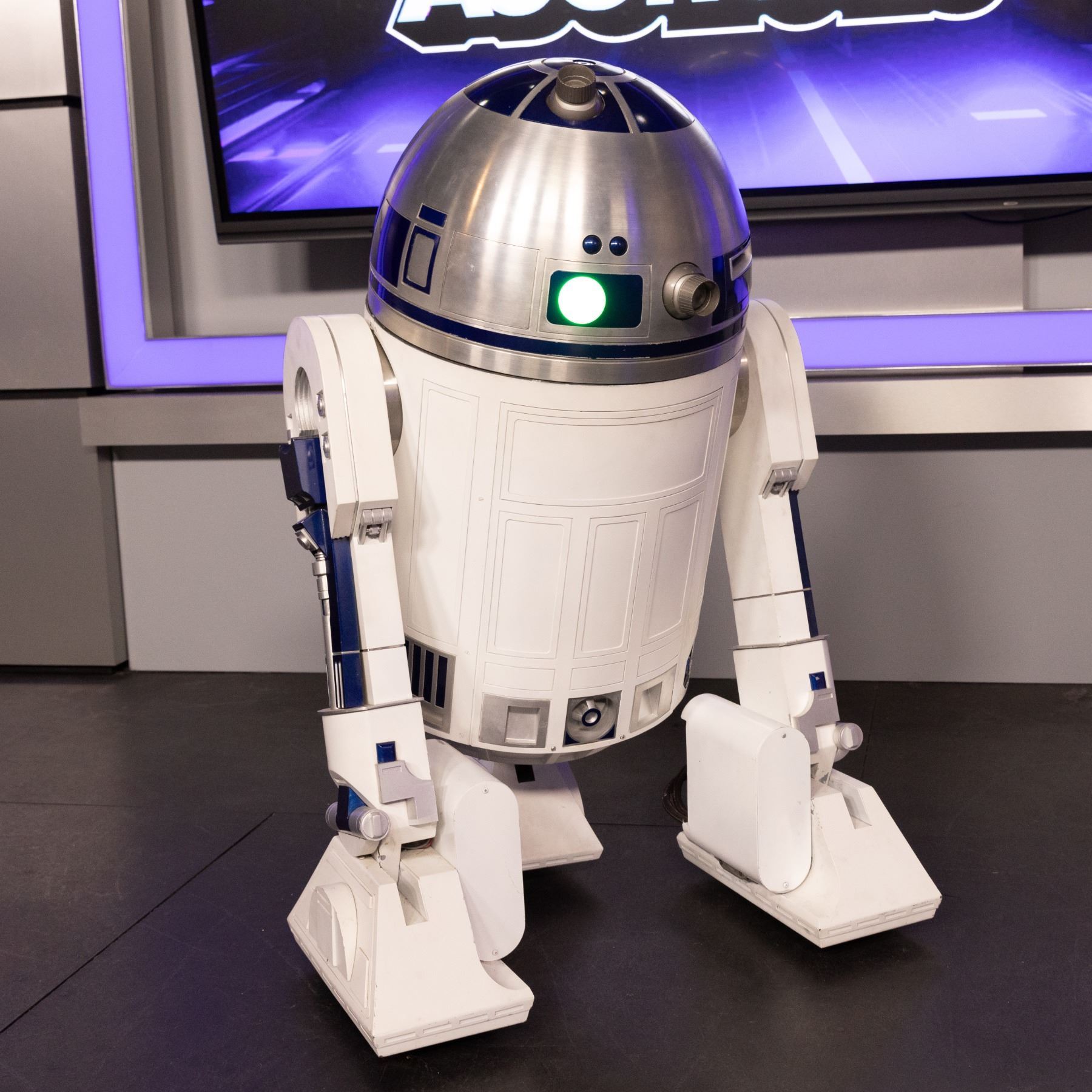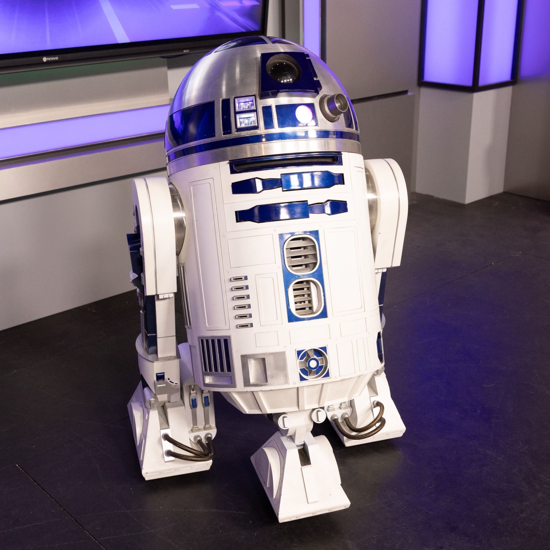 A fully animatronic R2D2 from the Disney Plus series, Obi-Wan Kenobi. The droid moves via a remote control. In the series, this R2-D2 unit appears during the first episode as Bail Organa (Jimmy Smits) and Breha Organa (Simone Kessell) talk about Leia (Vivien Lyra Blair).