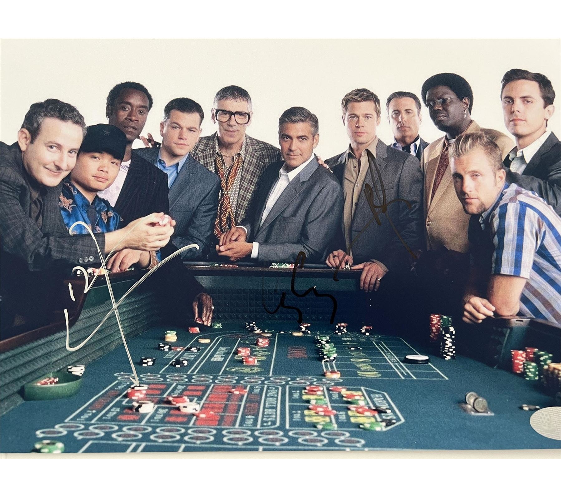 Ocean's Eleven cast signed movie photo autographed by Brad Pitt, George Clooney and Don Cheadle. 8x10 inches