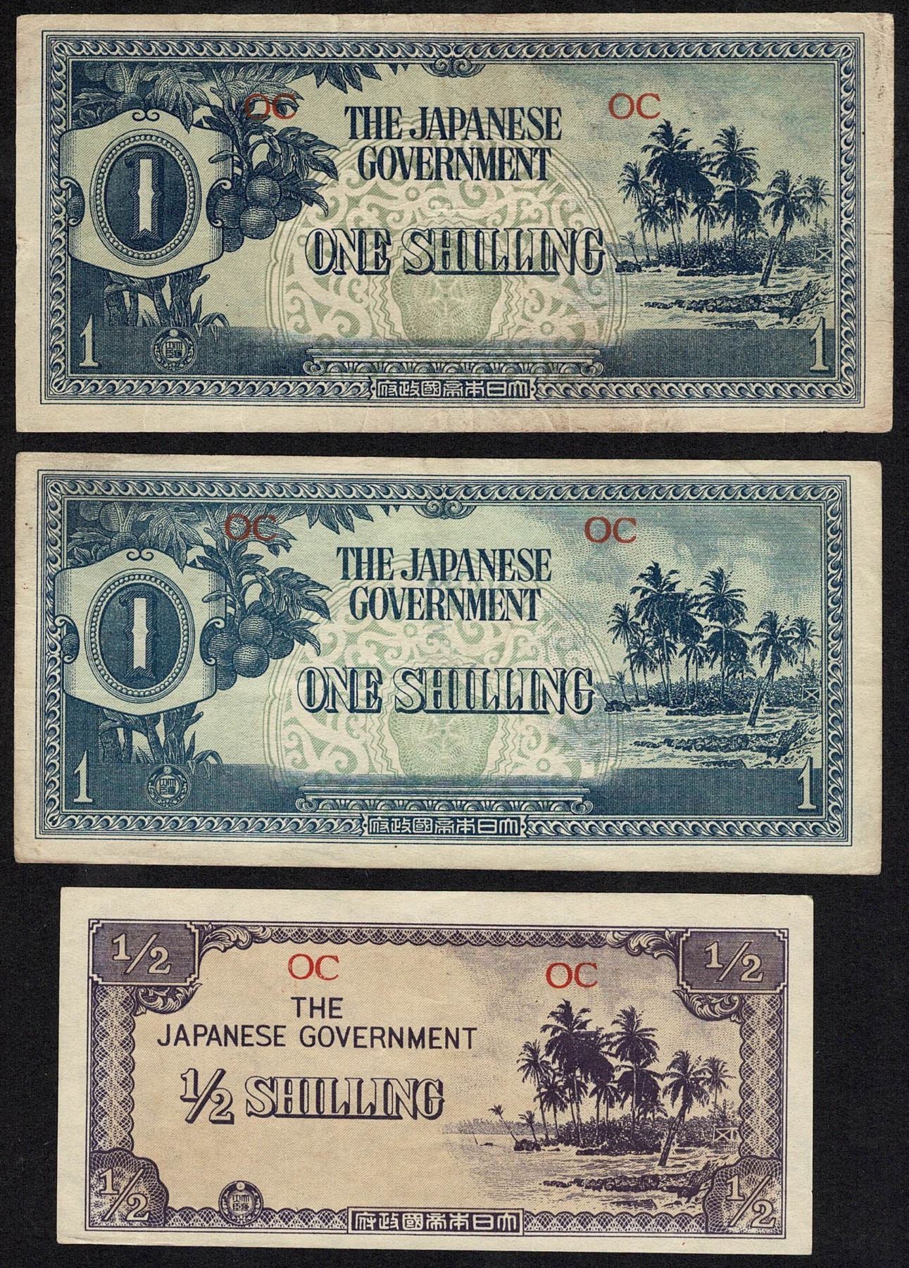 Oceania 3x ½ 1 Shilling 1942 Japanese Government Pick 1 - 2