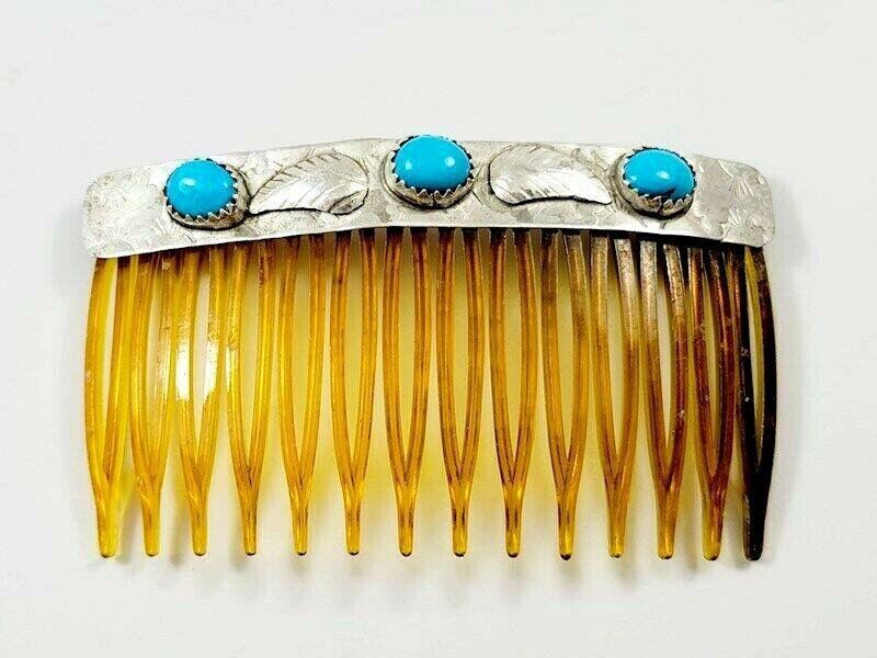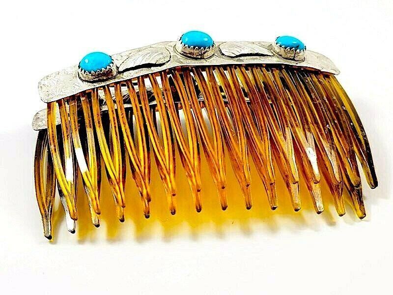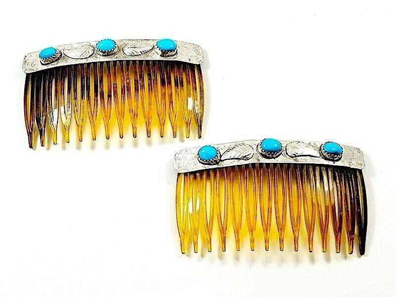 Old Pawn Navajo Turquoise Hair Combs Pair Sterling