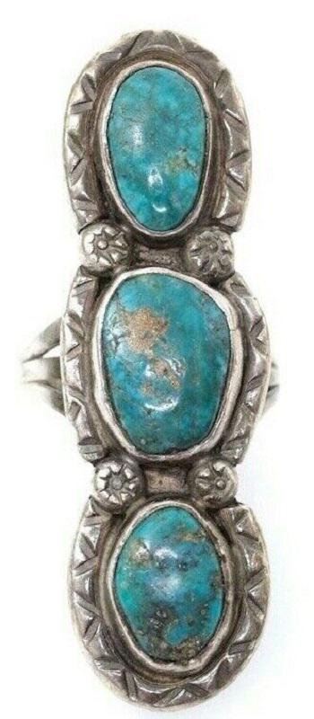 Old Pawn Navajo Turquoise Statement Ring Size 6.5