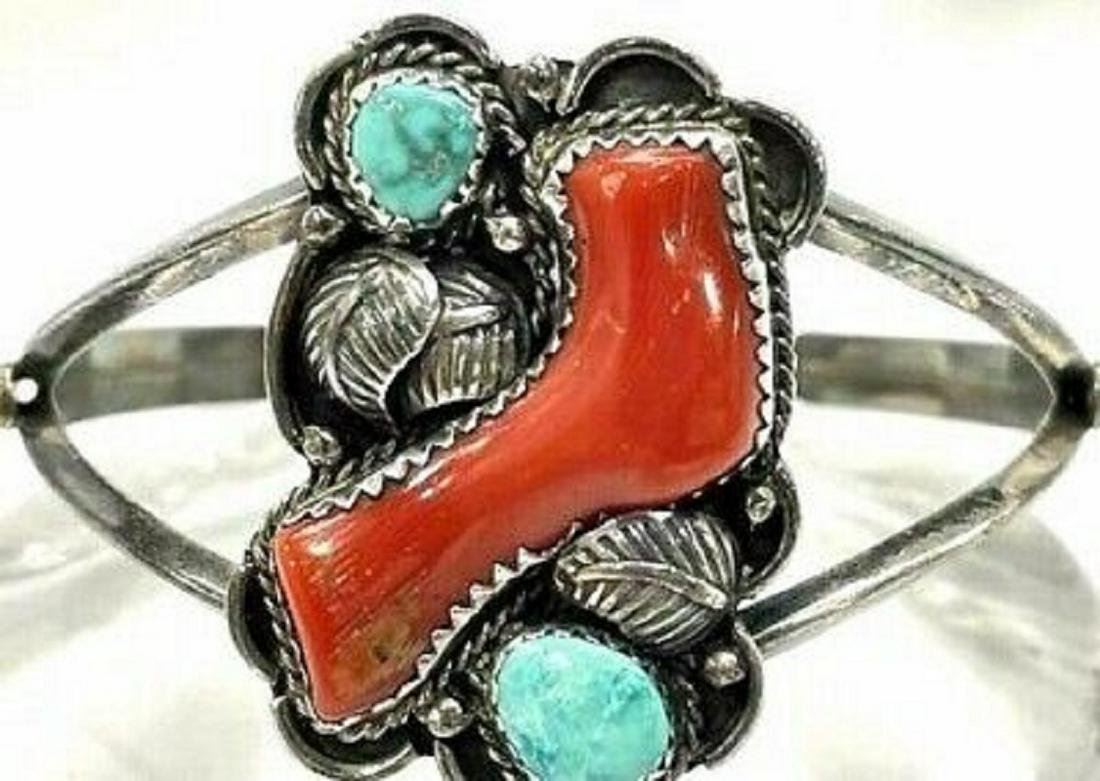 Old Pawn Zuni Cuff Bracelet Mediterranean Branch Coral