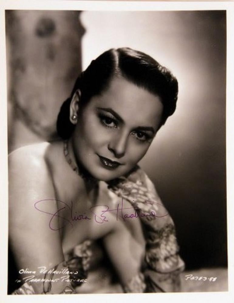 8 in. by 10 in. Black and white portrait photo autographed by Olivia De Havilland.