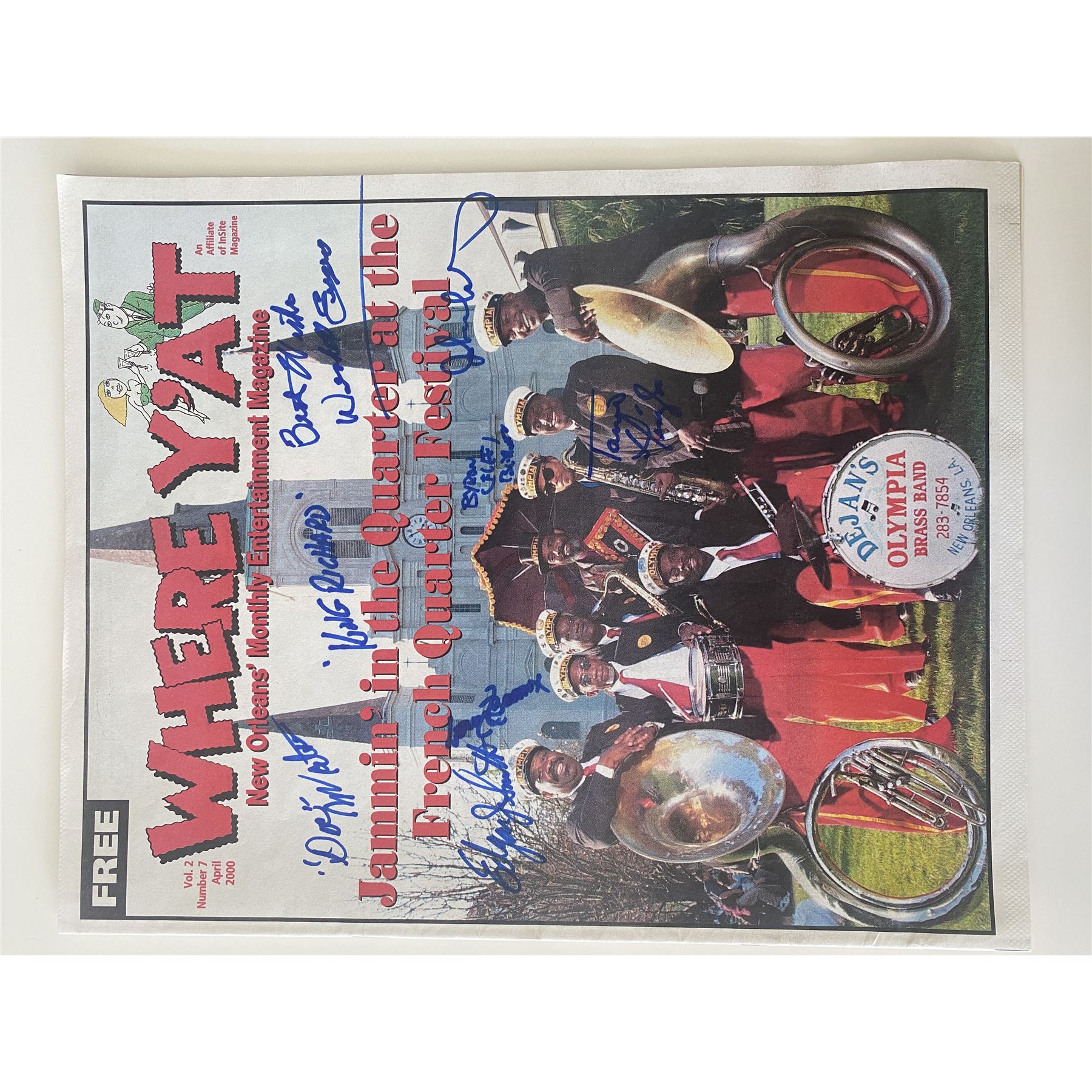 Olympia Brass Band signed 2000 Where Y'at Vol.2 #7 magazine11x14 inches.