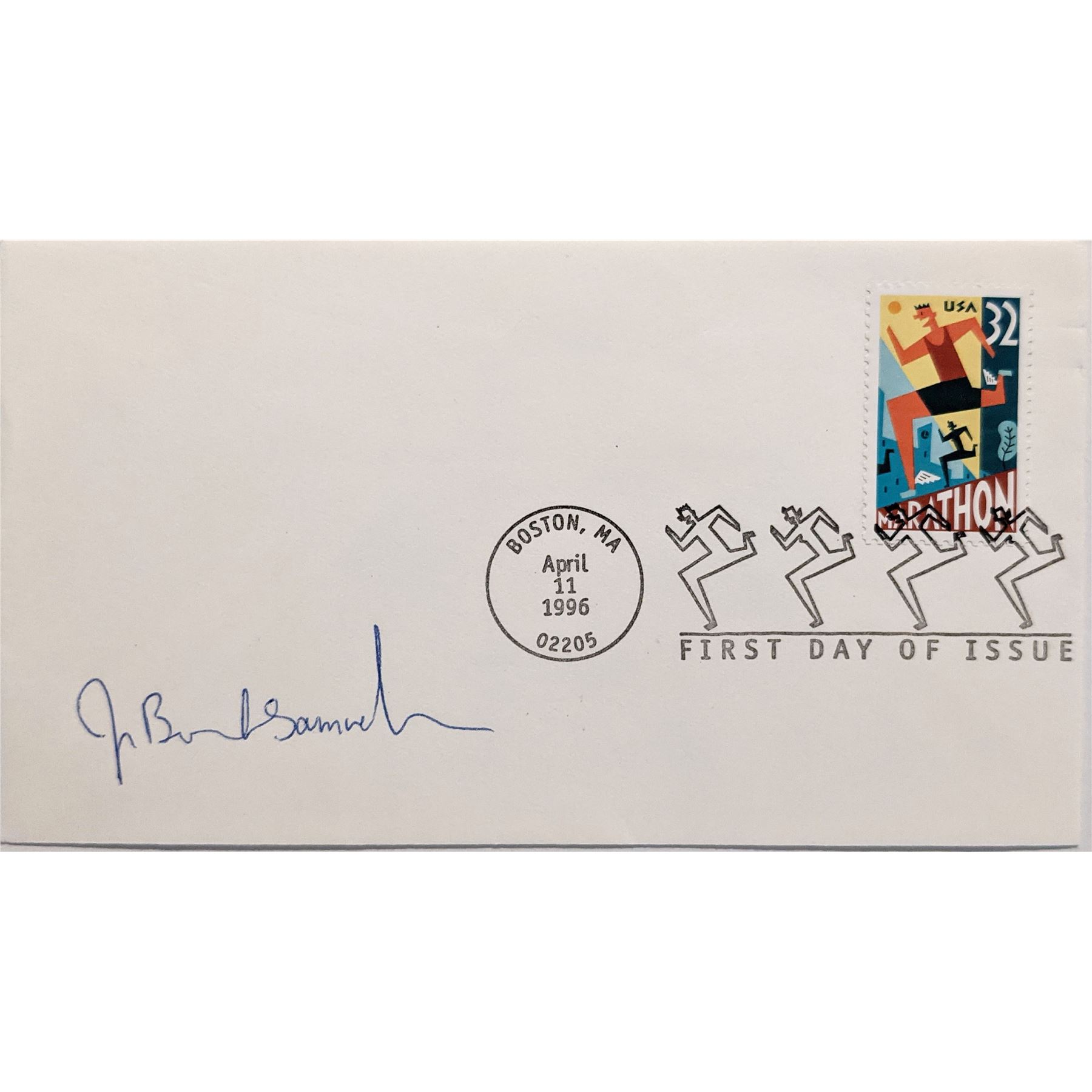 Actress Joan Benoit Samuelson signed first day cover. 4 x 7 inches.