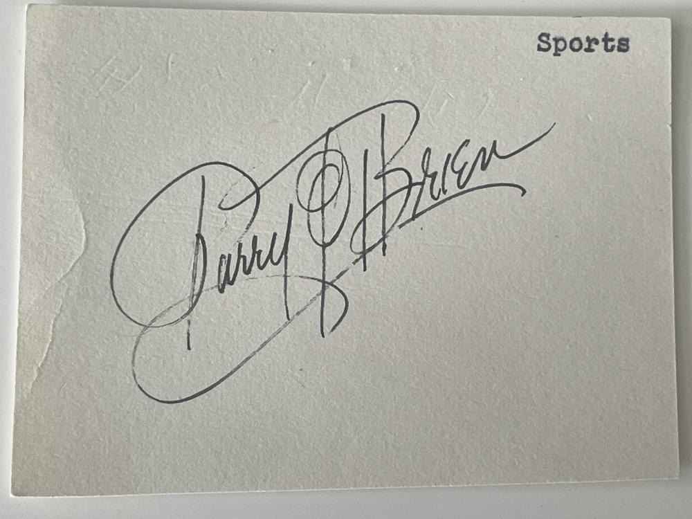 Olympic athlete Parry O'Brien autograph note. 3x4 inches