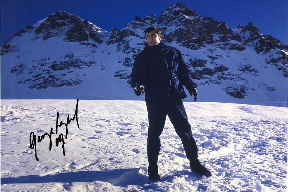 On Her Majesty's Secret Service facsimile signed movie photo autographed by George Lazenby. 8x10 inches. This item is a reprint of an original autograph