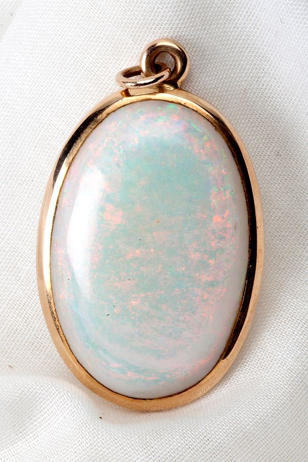 Opal, 14k Yellow Gold Pendant. Featuring one large fire opal, measuring approximately 35.00 x 22.00 mm., bezel set in a 14k yellow gold frame, gross weight 11.70 grams.