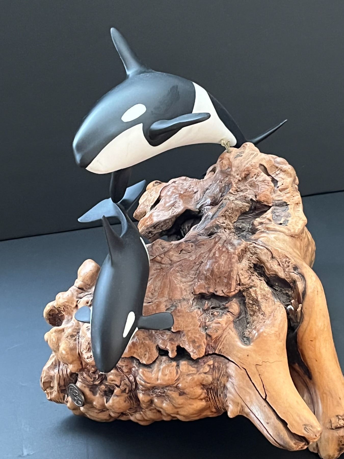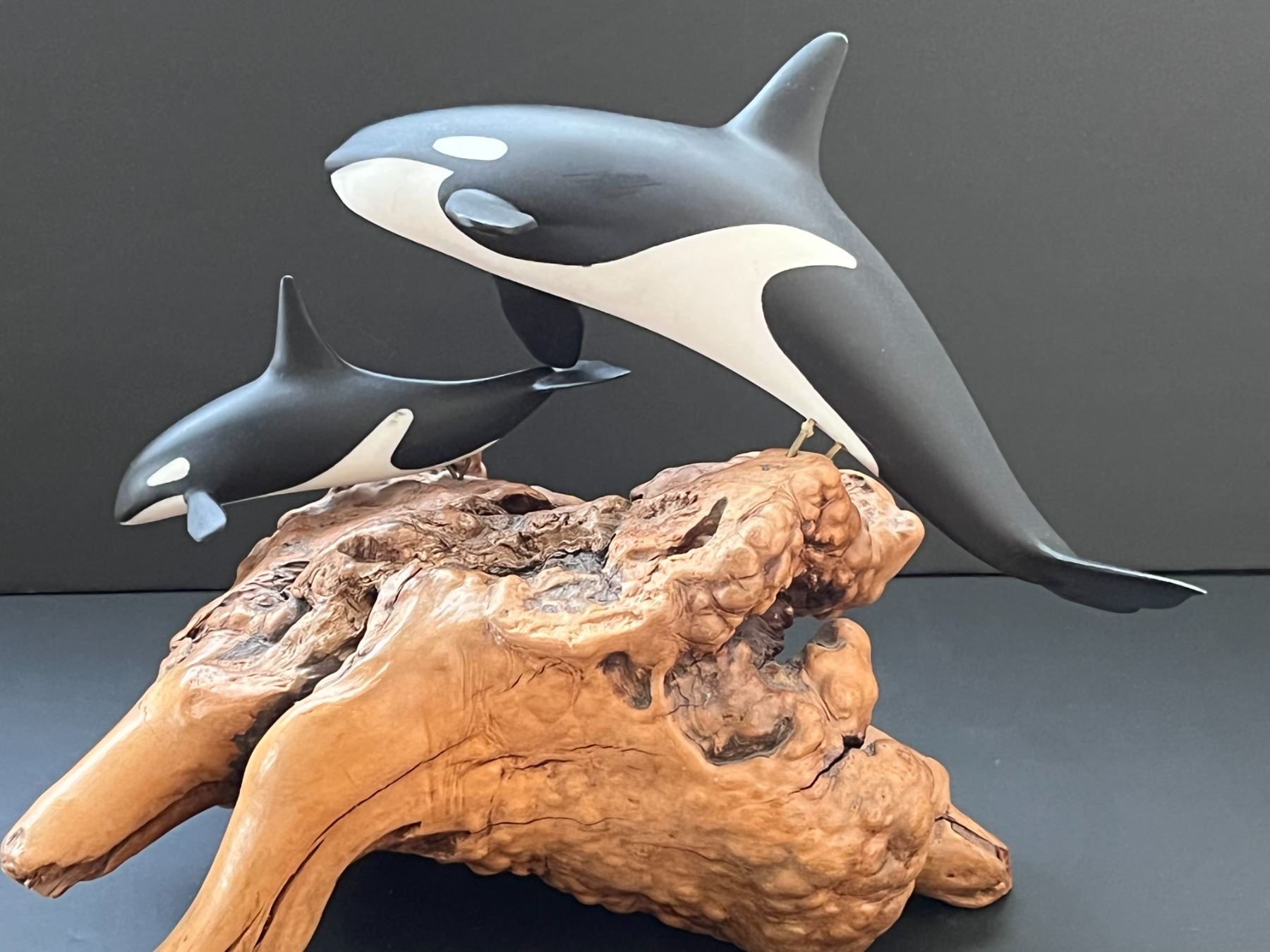 mother Orca and baby statue by John Perry