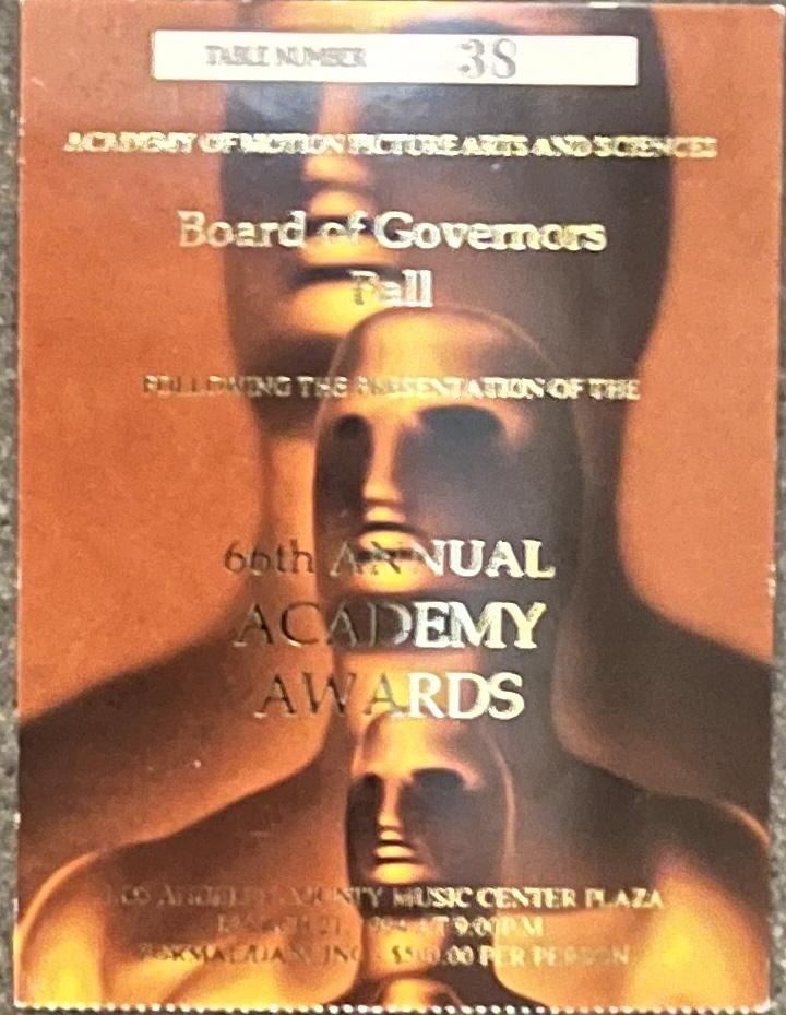 Original 1994 Admission Ticket to 66th Annual Academy Awards on March 21, 1994 This item is part of an exclusive collection obtained from an executive at Paramount Pictures.