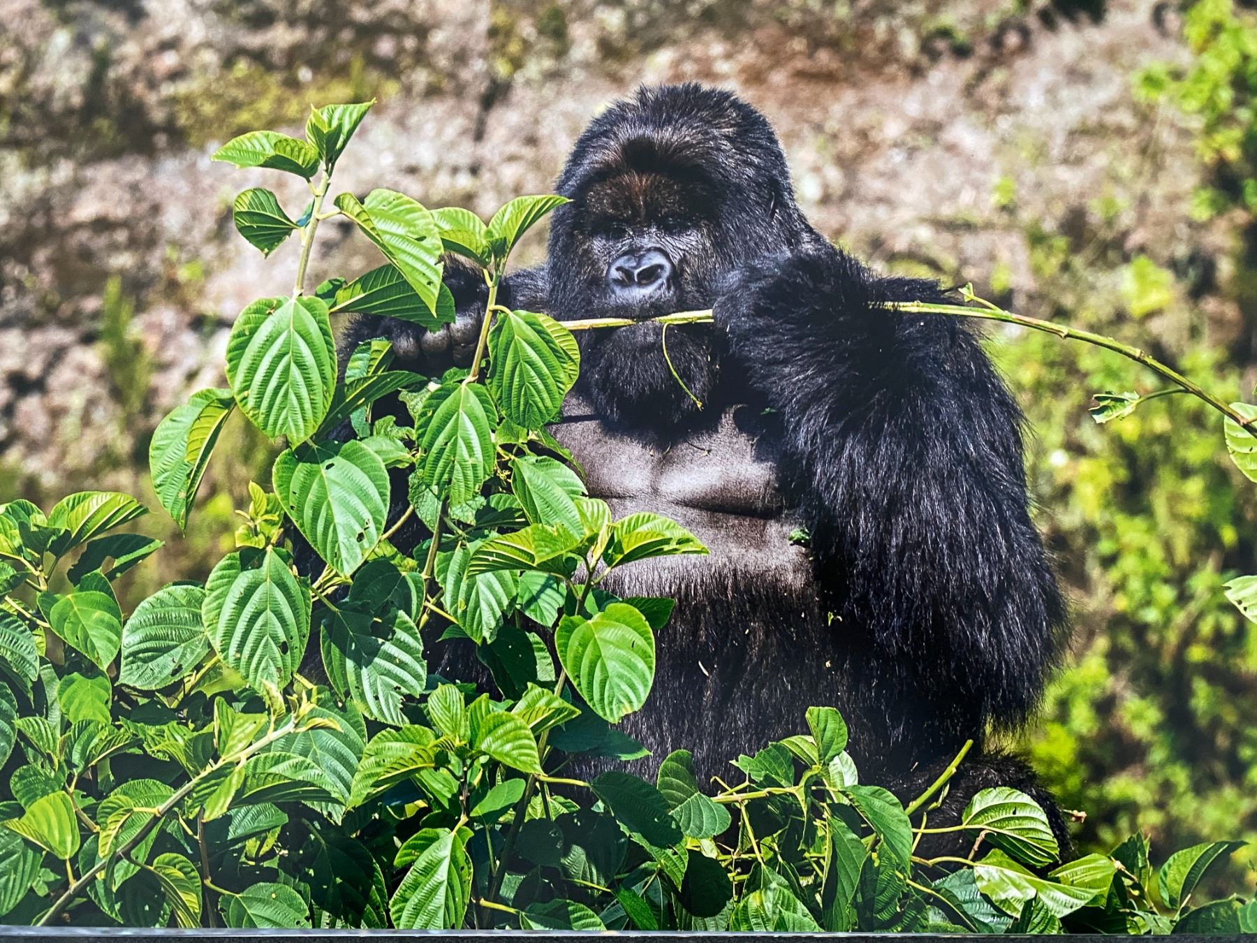 Original African Safari photo. Gorilla having a snack. This photo was taken at the Volcanoes National Park in Rwanda. High quality photo paper. Signed artist proof. 12x18 inches