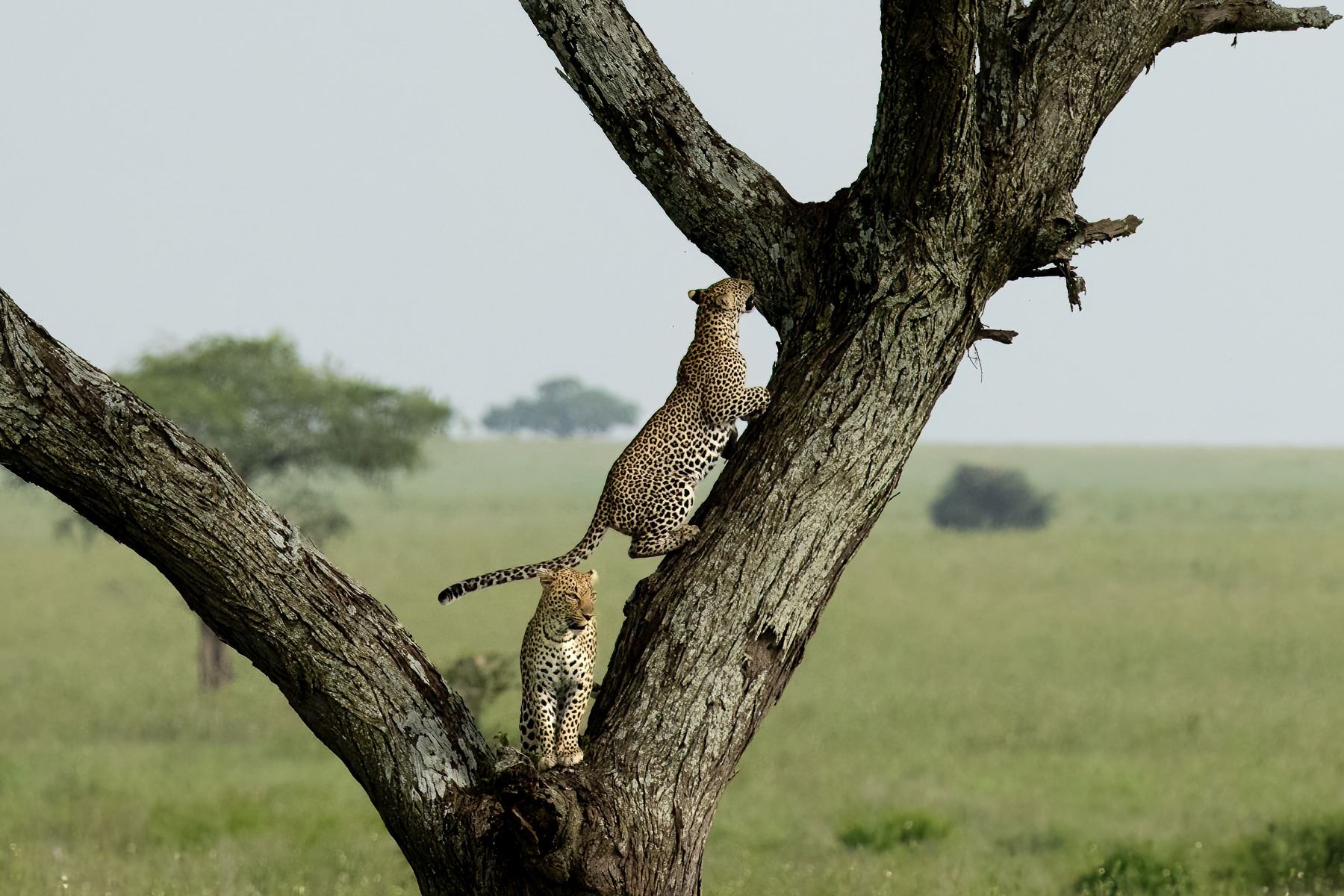 Original African Safari photo. Leopard and cub in a tree. This photo was taken in Tanzania. High quality photo paper. Signed artist proof. 12x18 inches