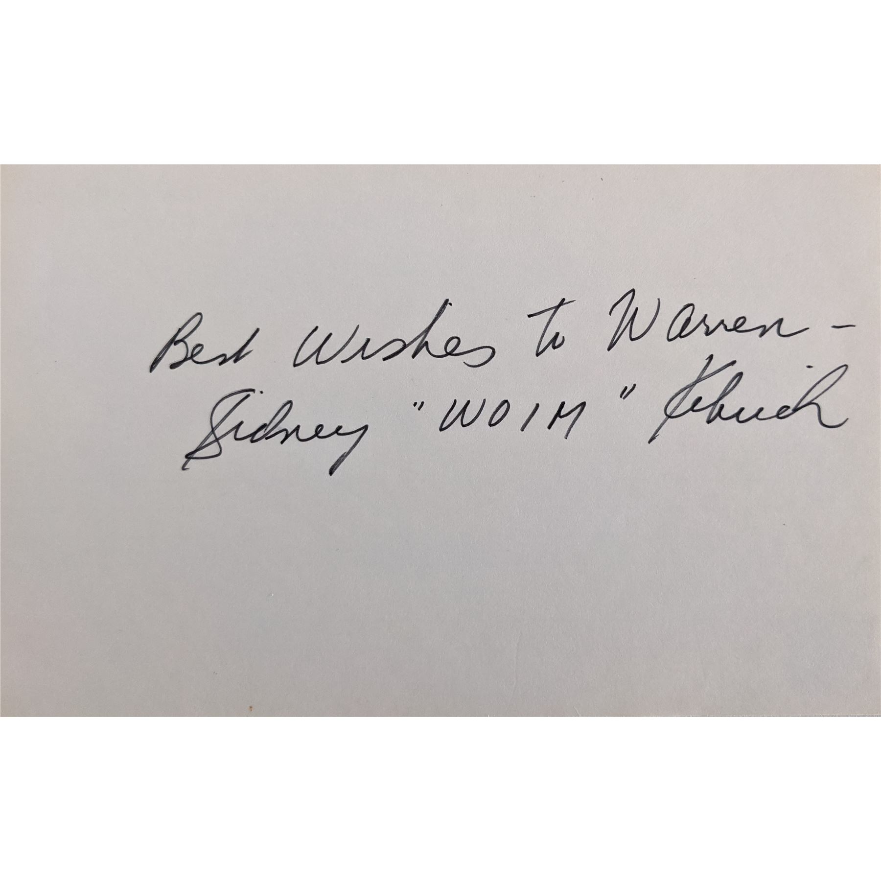 "This autograph is certified by a 20 year plus member of IADA (International Autograph Dealers Association) , UACC (Universal Autograph Collectors Club), IACC - International Autograph Collector Club), Manuscript Society, SAG (Screen Actors Guild), Southern California Motion Picture Council, APS (American Philatelic Society), ASCC (American Society Of Check Collectors), AFDCS (American First Day Cover Society), Hollywood Heritage Museum, and the Golden State Boxing Association. Additionally a member of the British Autograph Club and German Autograph Collectors Club. The COA issuer has the following credentials: UACC - Autograph Appraisal Course. UACC- Autograph Authentication Course. US Army CID Handwriting Program
