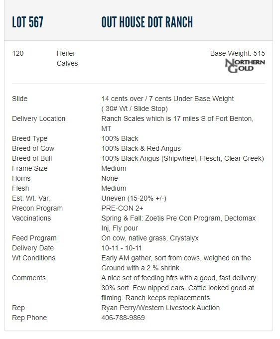 Out House Dot Ranch - 120 Heifers; Base Weight: 515
