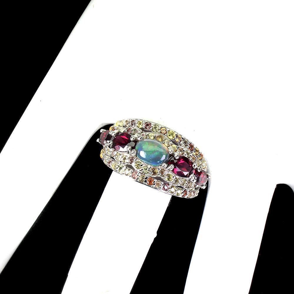 Oval Black Opal 7x5mm Rhodolite Garnet Sapphire 925 Sterling Silver Ring Size 9
