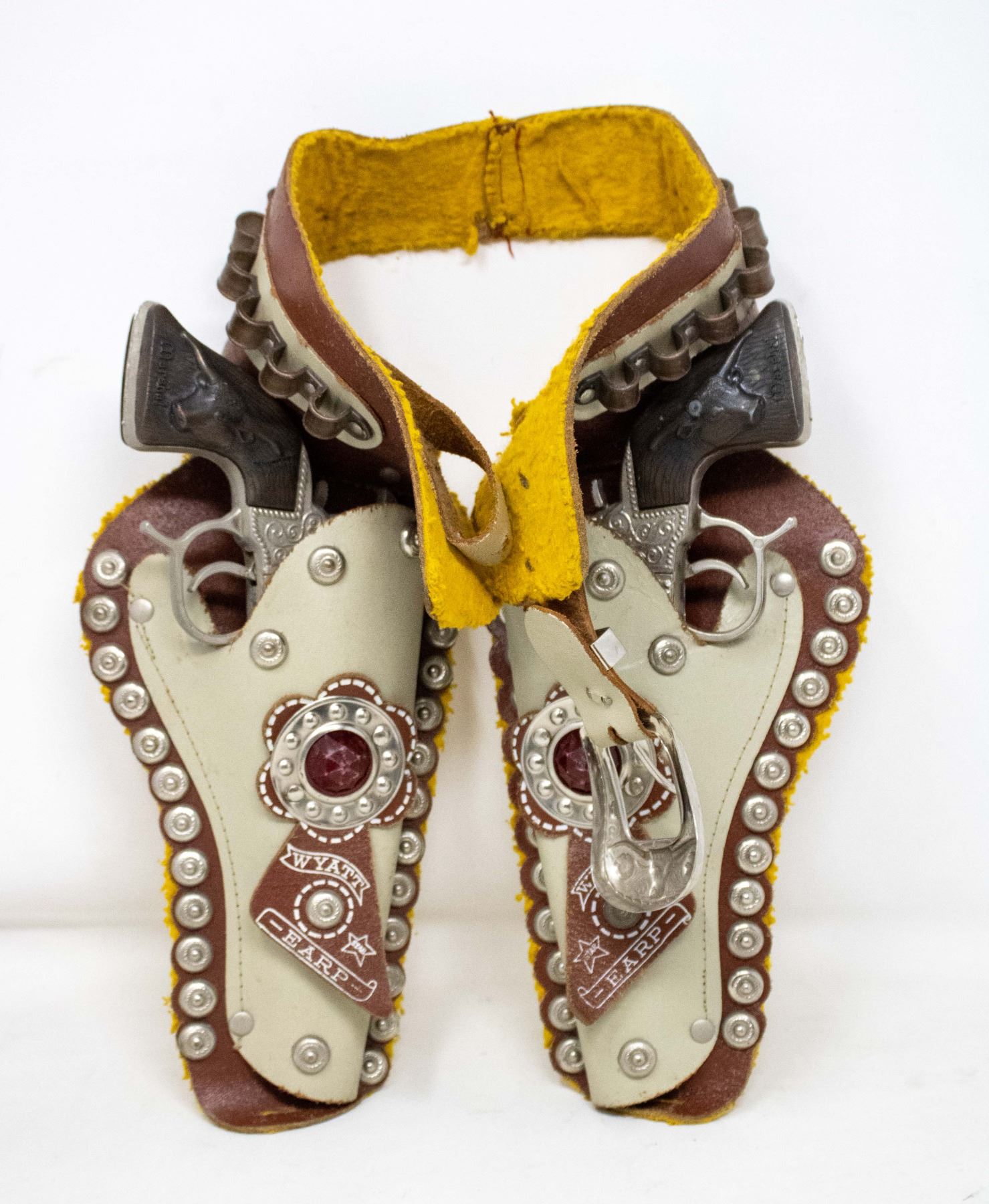 PAIR ANTIQUE WYATT EARP CAP GUNS W FANCY HOLSTER
