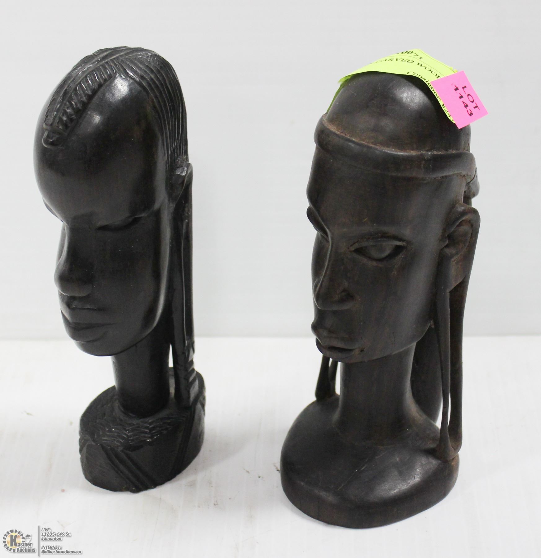 PAIR OF AFRICAN CARVED WOODEN HEADS