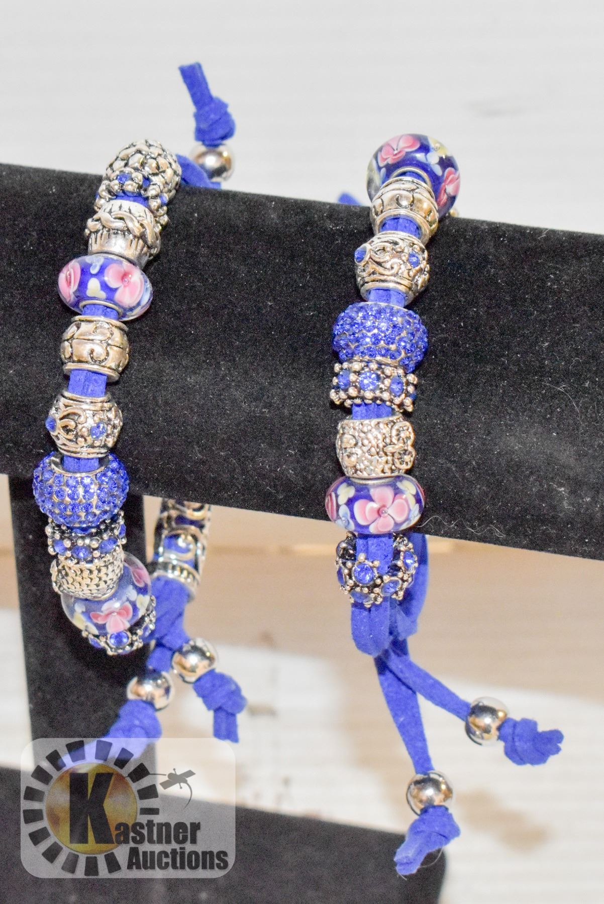 PAIR OF BLUE ADUSTABLE MULTI FACET BEAD BRACELETS