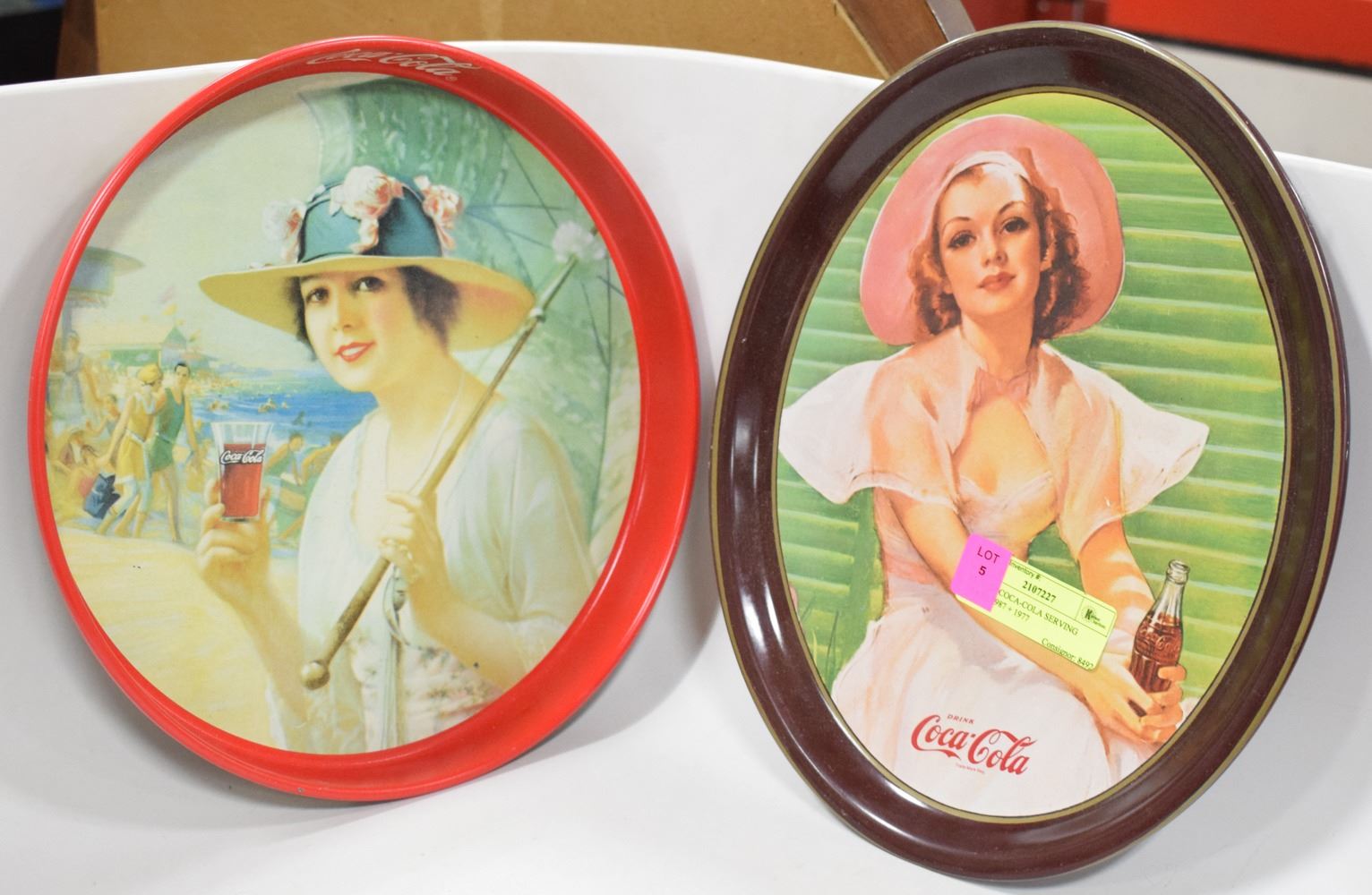 PAIR OF COCA-COLA SERVING TRAYS 1987 + 1977