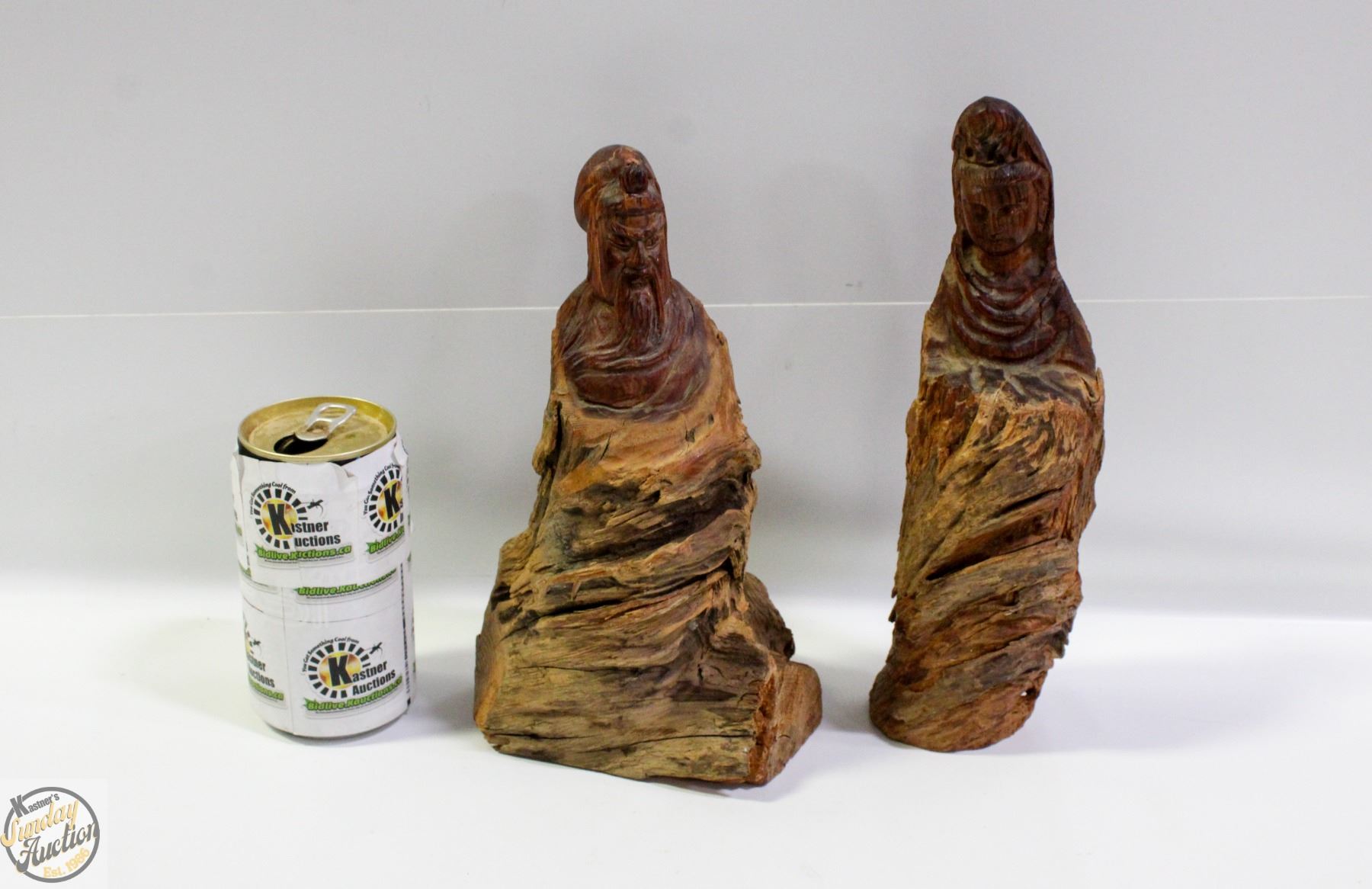 PAIR OF HAND CARVED STATUES LIVE EDGE WOOD