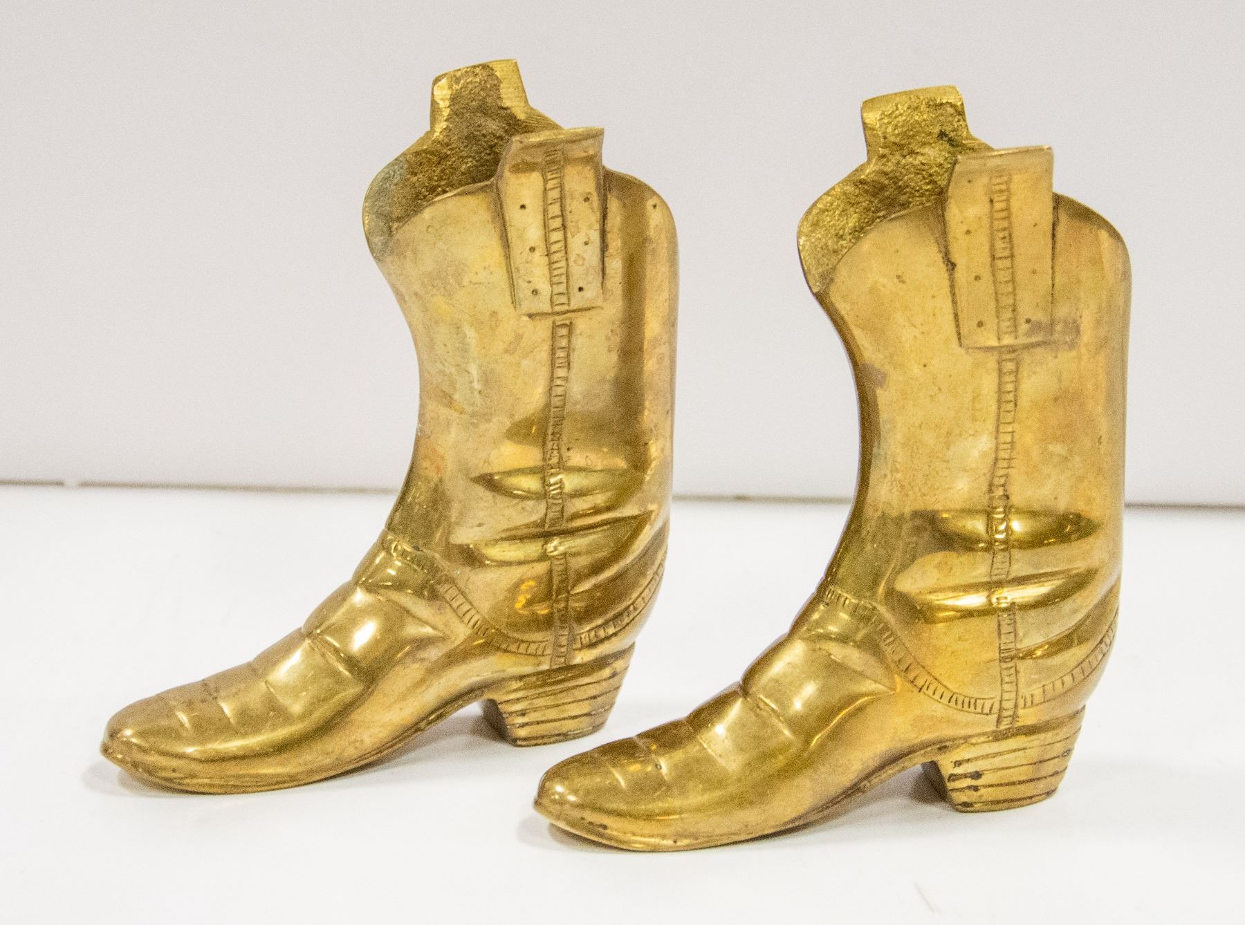 PAIR OF HEAVY BRASS COWBOY BOOTS