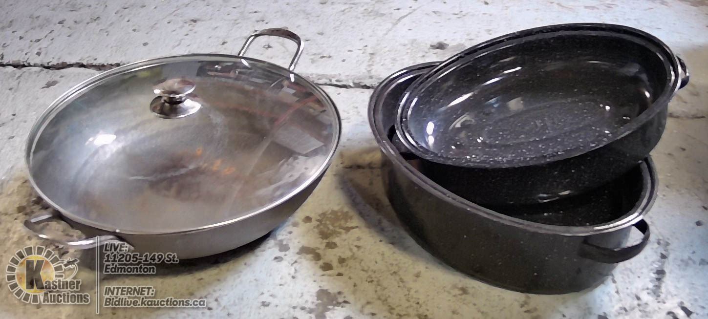 PAIR OF ROASTERS & 16" WOK PAN WITH LID