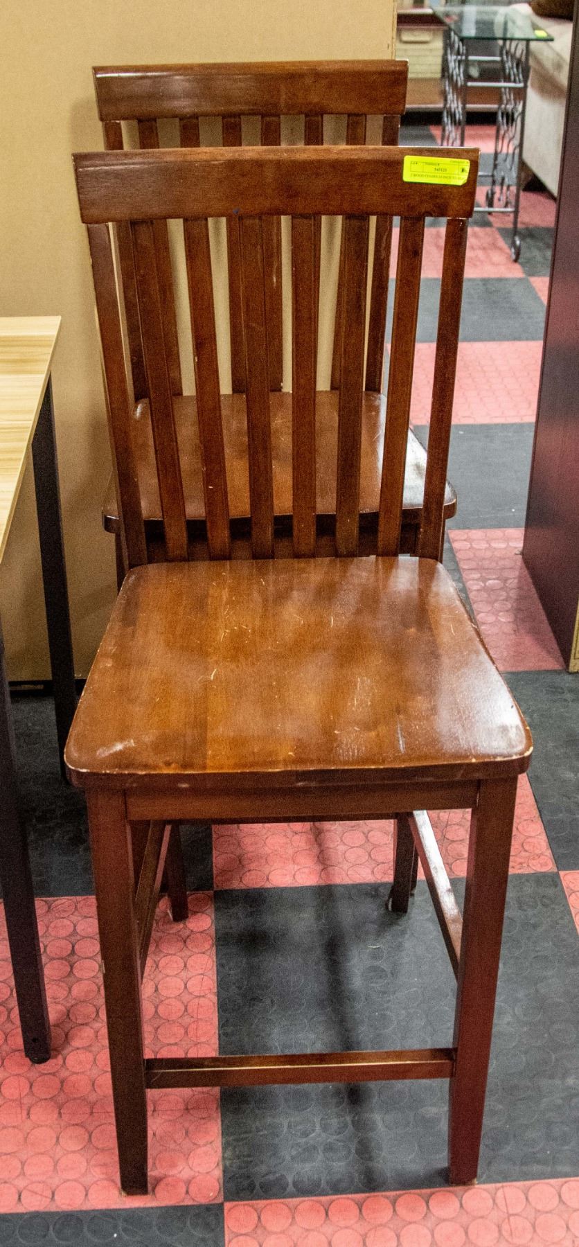 PAIR OF WOODEN BAR HEIGHT DINING CHAIRS