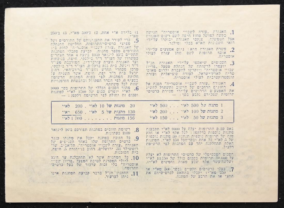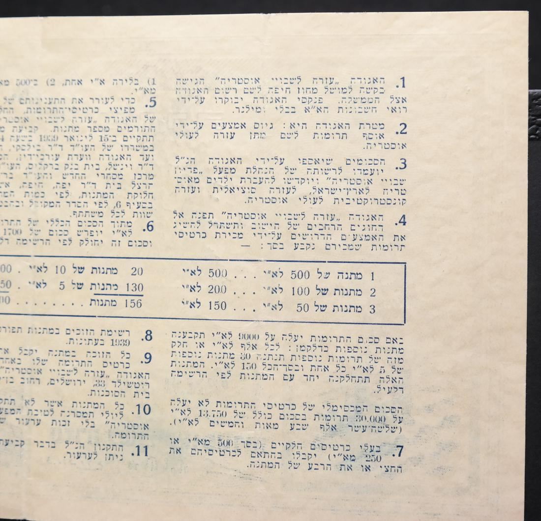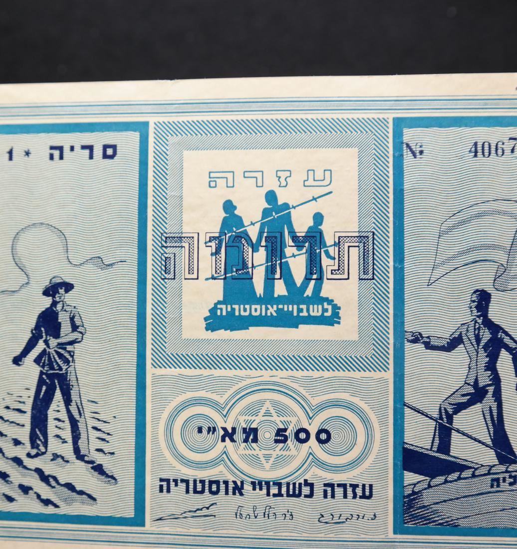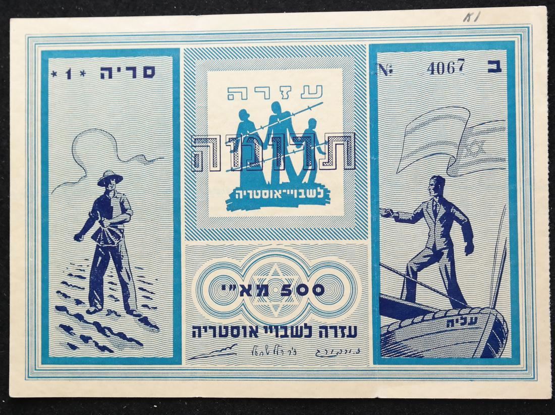 To raise funds for Austrian Jewish immigrants to Palestine, two different denominations, on watermarked paper and with serial numbers, sound and Very Fine.