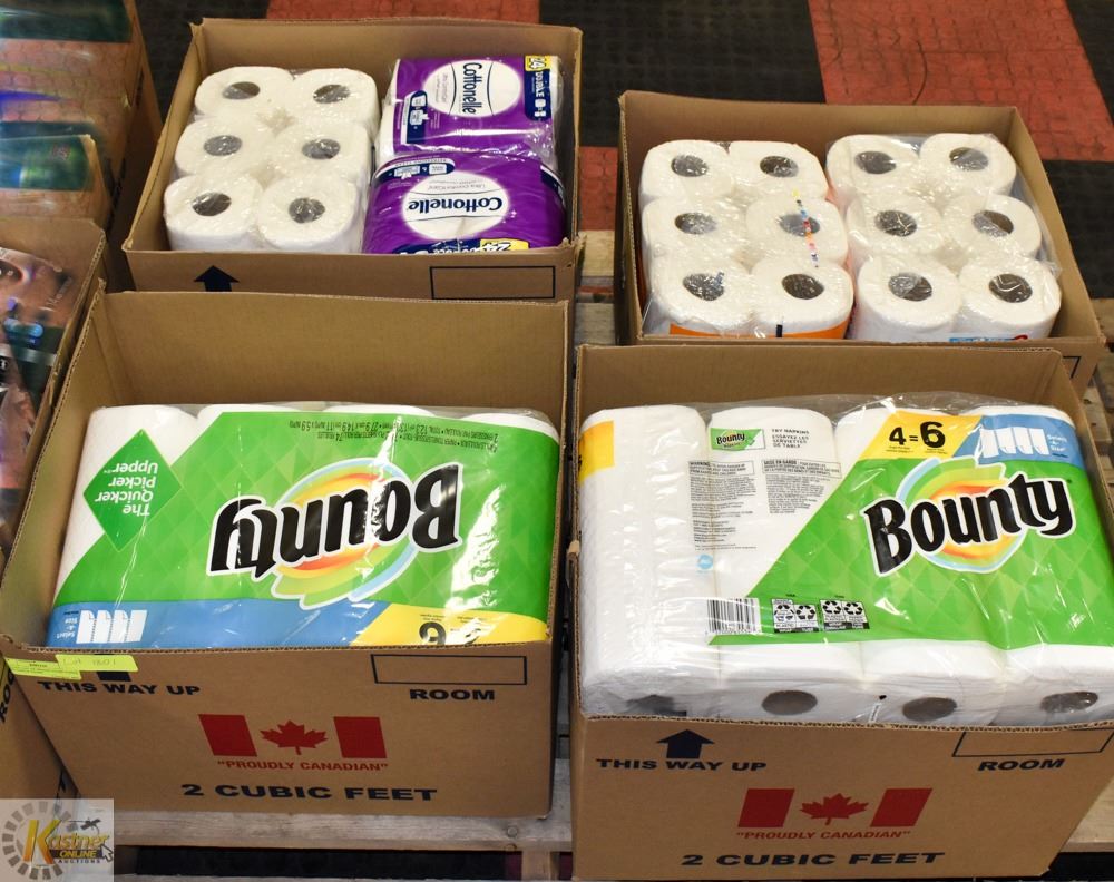 PALLET LOT OF BRAND NAME PAPER AND TISSUE ITEMS