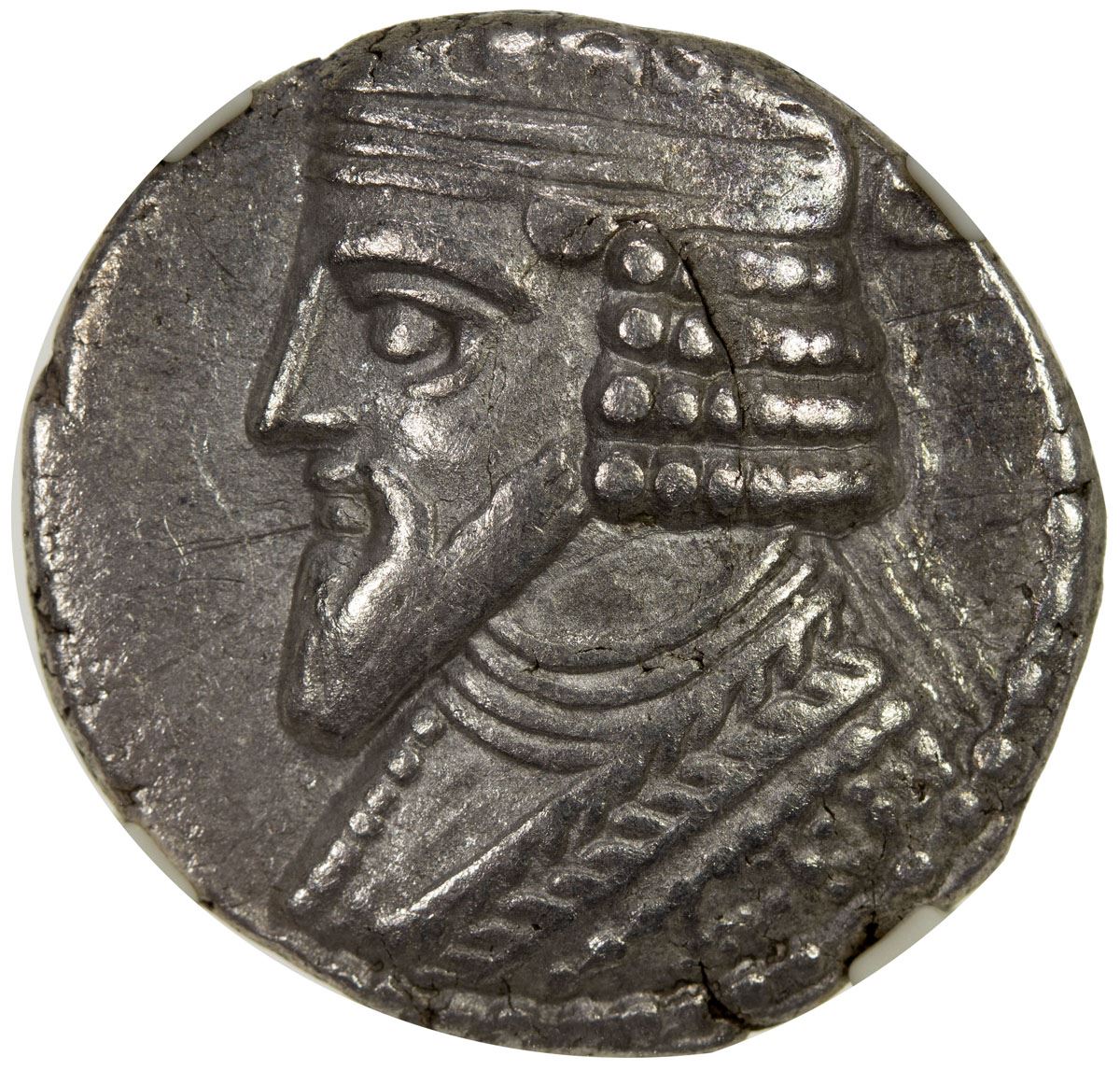 PARTHIAN KINGDOM: Gotarzes II, 44-51 AD, AR tetradrachm, Seleukeia, Seleukeia on the Tigris, diademed and draped bust of Gotarzes II left // King seated right, receiving wreath from Nike standing left, holding corncuopia, encapsulated by NGC, but grade not assigned, VF.