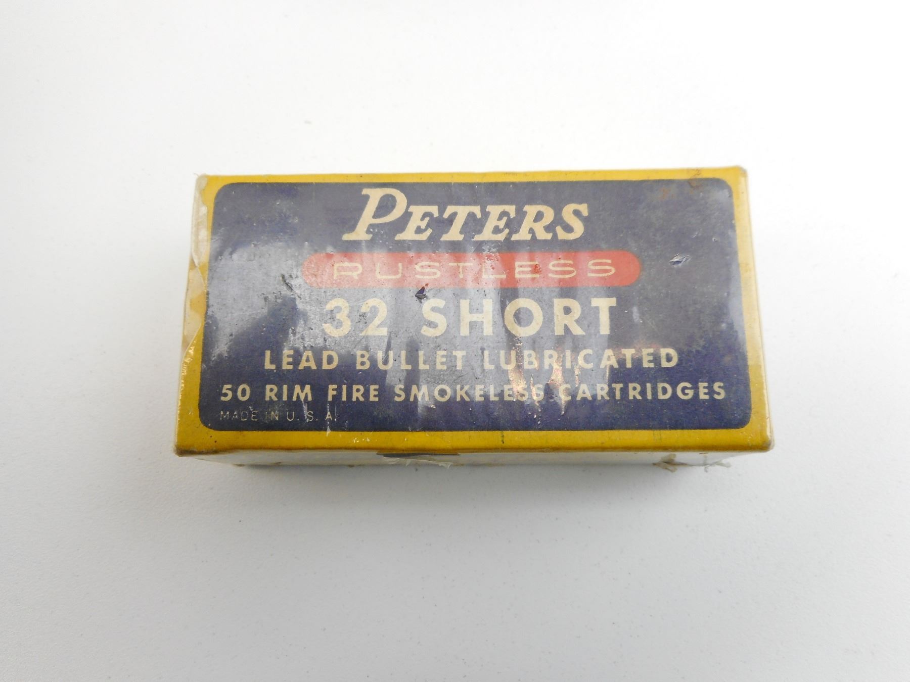 PETERS 32 SHORT AMMO , 50 RNDS PETERS 32 SHORT AMMO, IN VINTAGE SEALED PETERS BOX