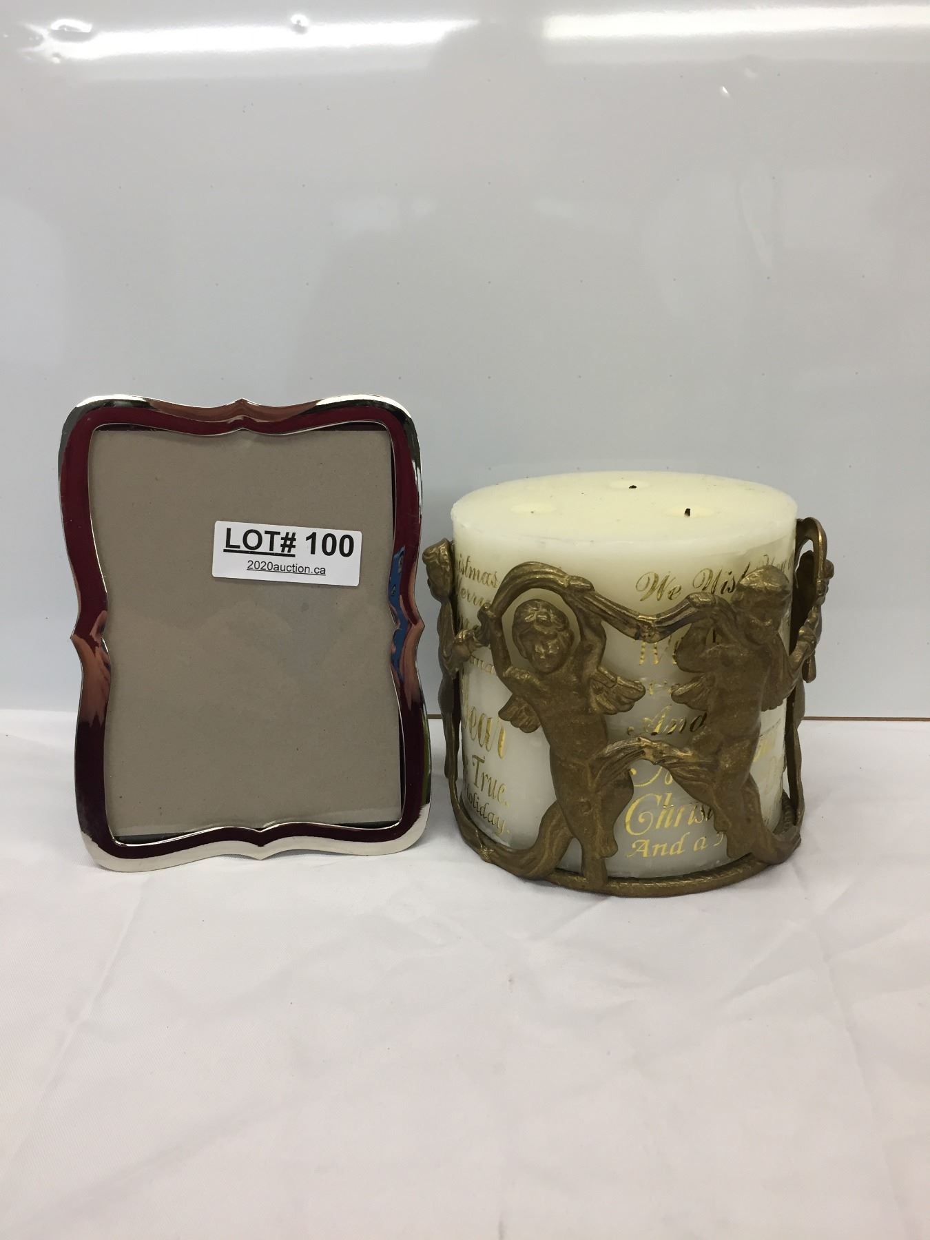 PICTURE FRAME AND LARGE 'DREAMS' TABLE CANDLE
