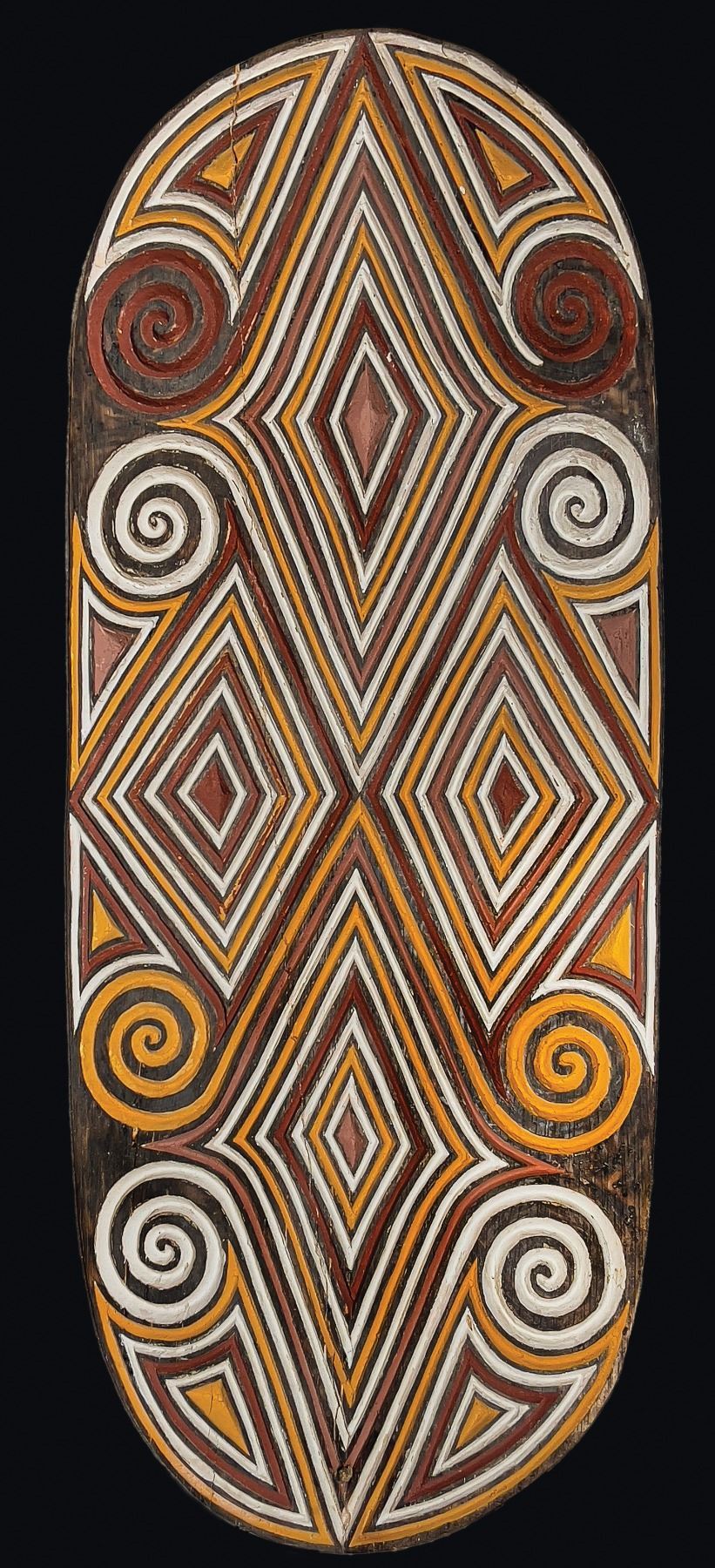 (1970s) A handsome and colorful tribal war shield wall sample from the OA showroom. 26"x10.5". VG+.