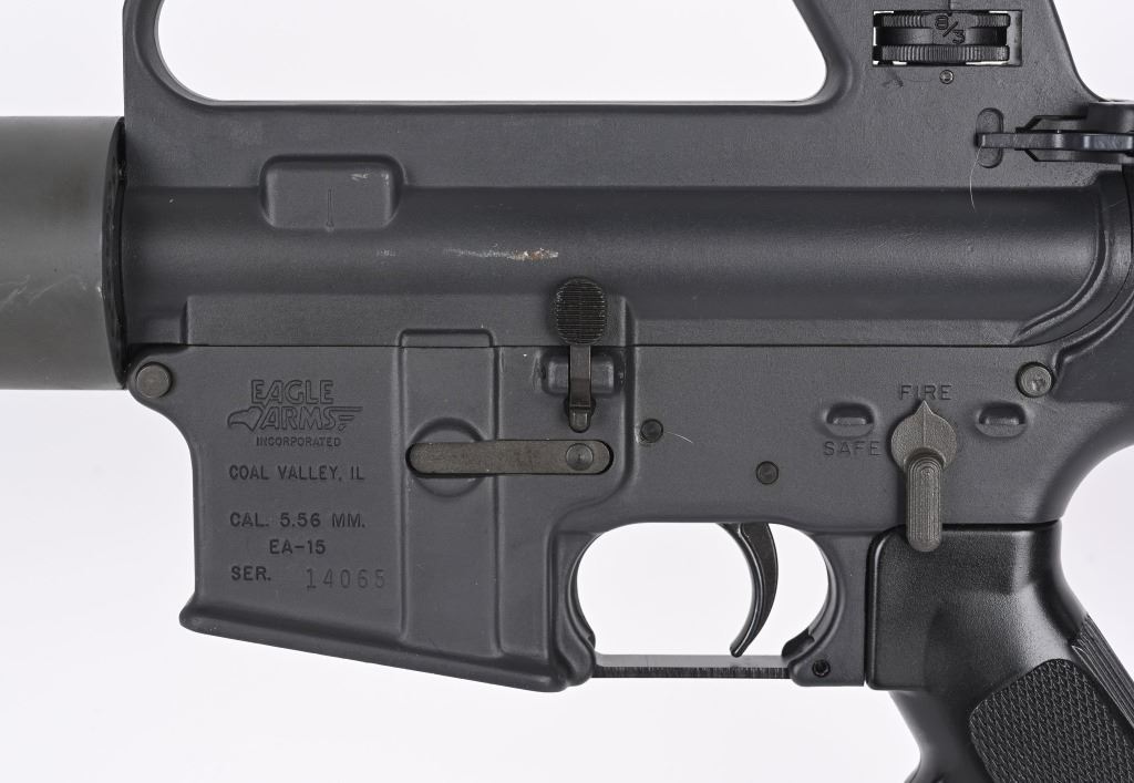 SERIAL NUMBER: 14065. BARREL: 16-1/2". CALIBER: 5.56MM. MANUFACTURED: 1990'S. Coal Valley Address, made before the 1994 AWB. HBAR profile barrel, with no markings. A2 flash hider. Post front sight and carry handle A2 rear. Free float M4 aluminum hand guard. Phosphate finish. Coated alumiunum CAR-15 style stock. NO MAGAZINE. CONDITION: Metal is excellent overall, with a few light handling marks. Furniture is excellent as well. Bore is shiny with crisp rifling. Mechanically fine. MODERN