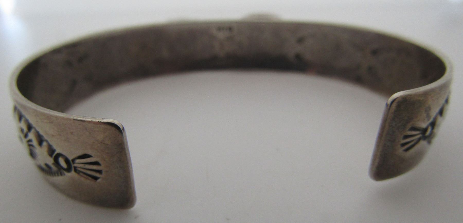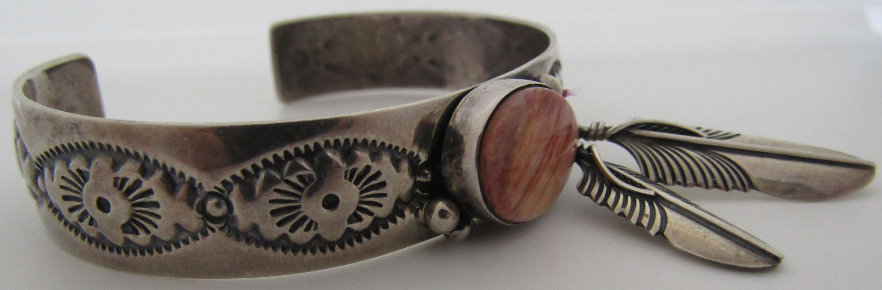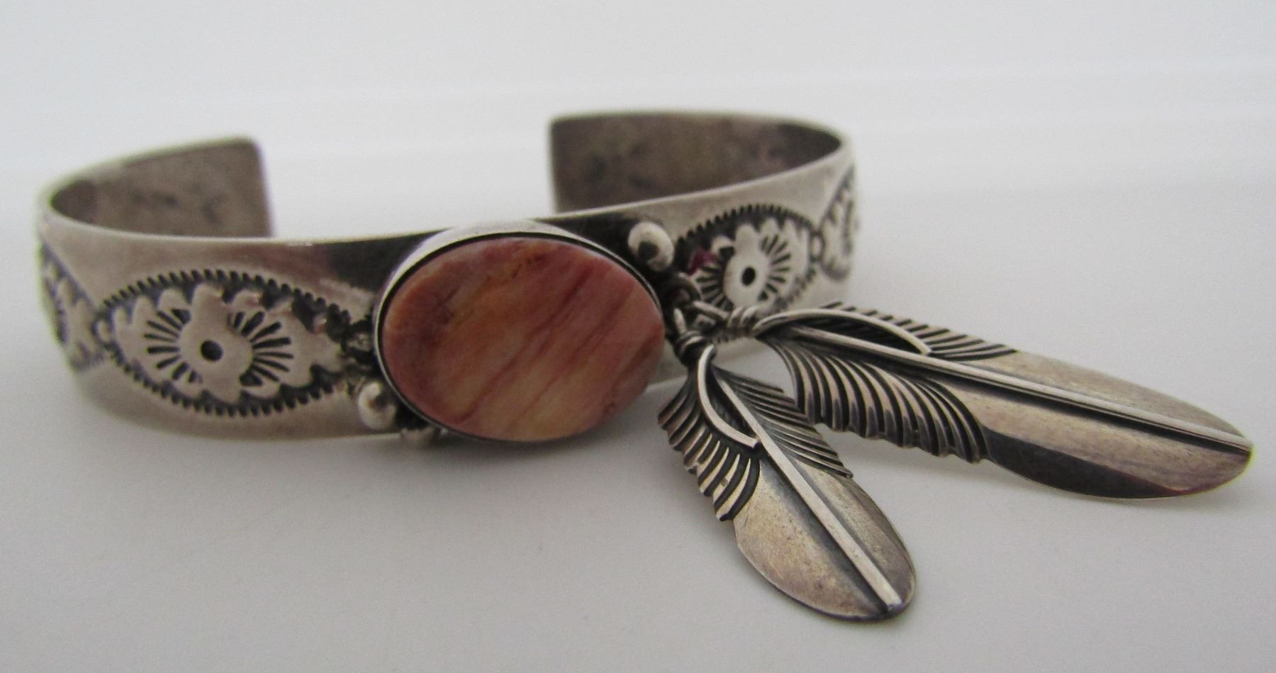 VINTAGE ESTATE HALLMARKED "PTG STERLING " PHILLIP GUERRO. NATIVE AMERICAN SOUTHWEST NAVAJO INDIAN JEWELRY. 12MM WIDE WITH 2 FEATHER CHARMS. FITS A 7" WRIST. WEIGHS 21.3 GRAMS. VINTAGE ESTATE EXCELLENT USEDCONDITION. USA SHIPPING $5.