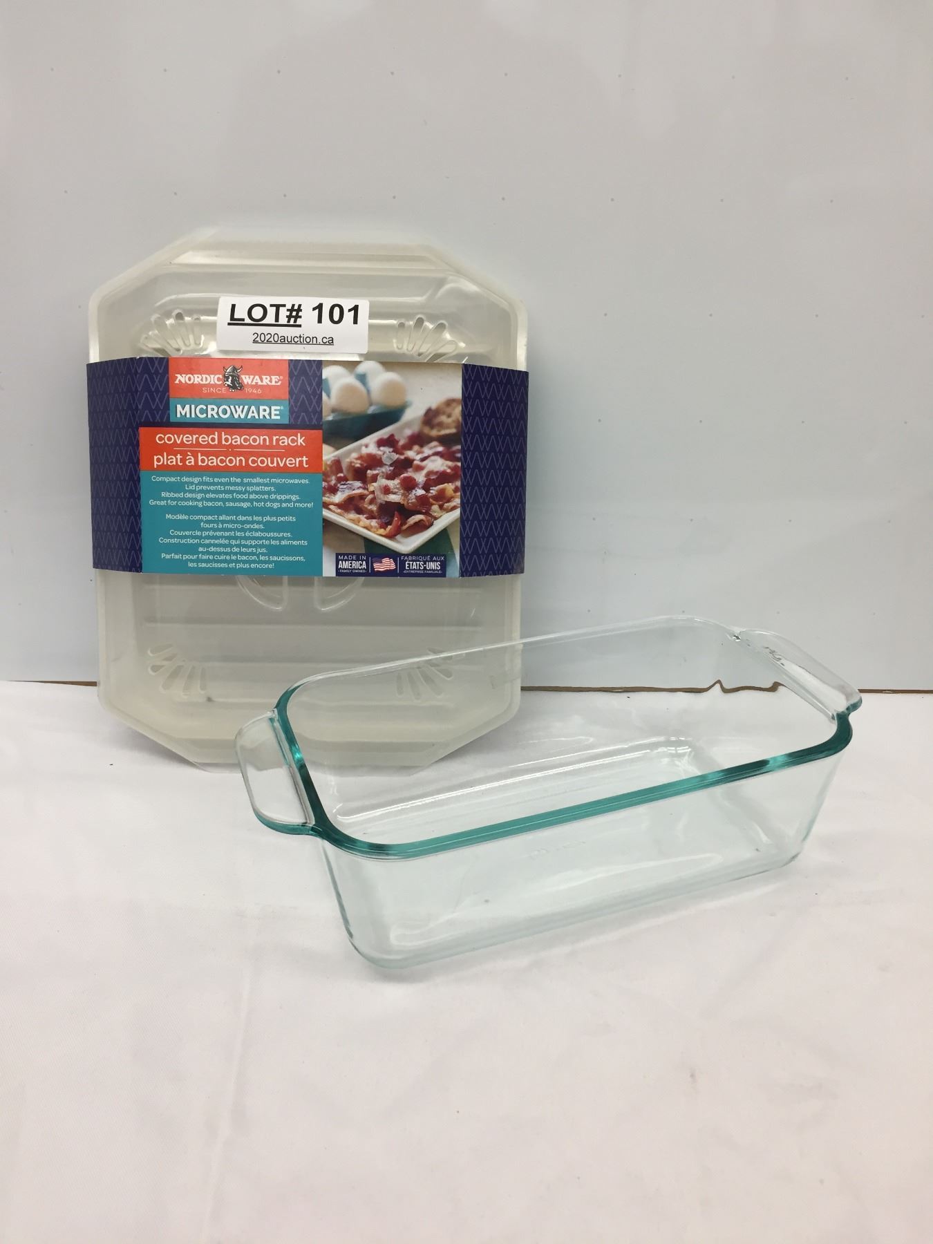 PYREX BAKING PAN + MICROWAVE BACON RACK