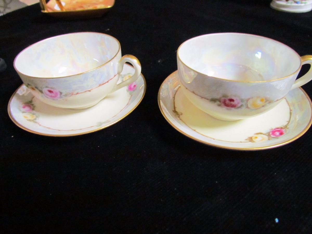 Pair E Hand China Cups Dated 1922