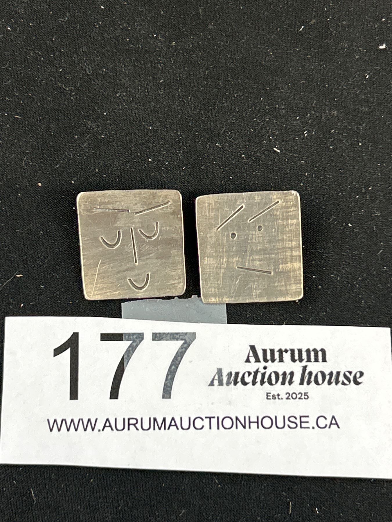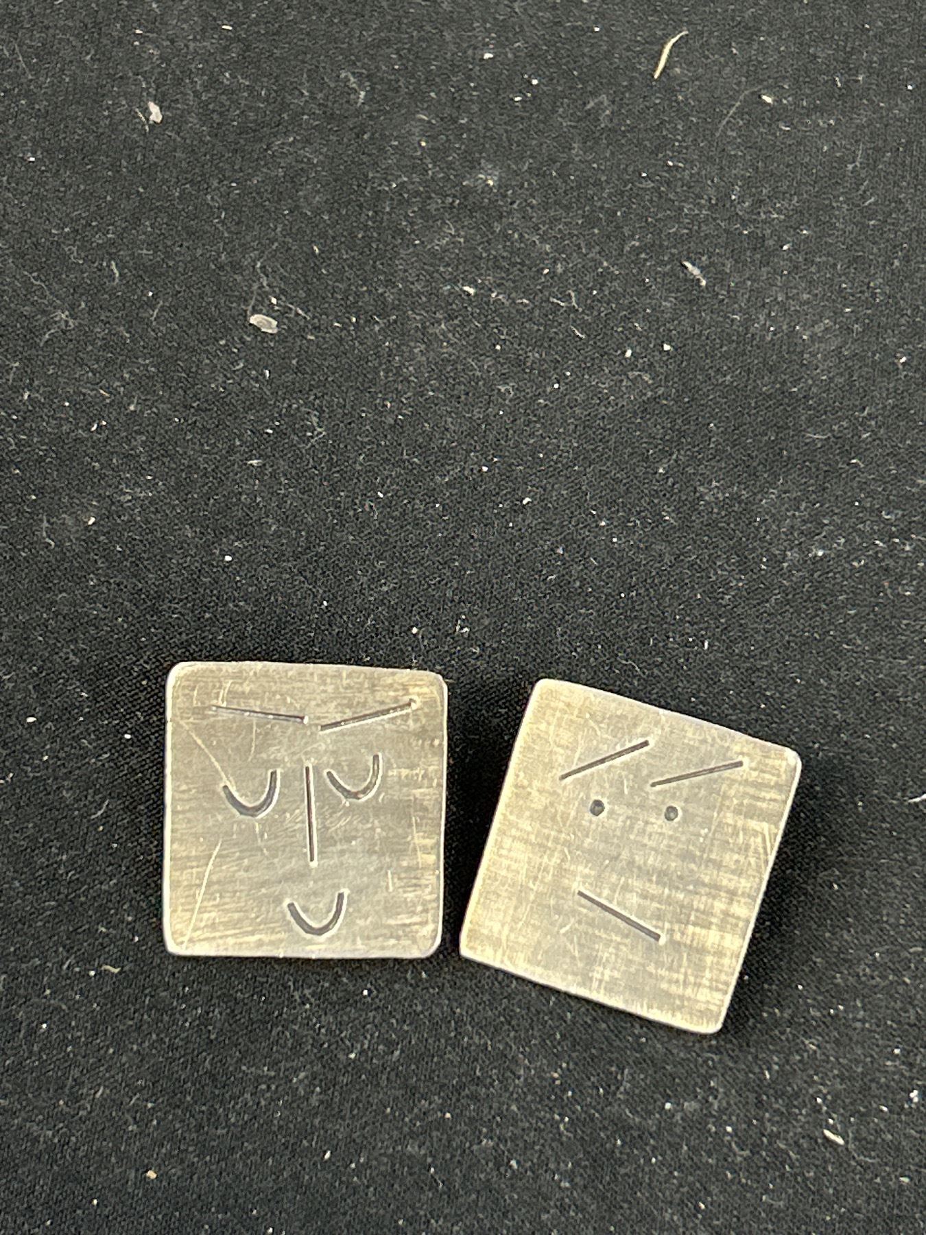 Pair of Sterling Silver Brooches, Happy and Sad Faces, Marked 925, RM